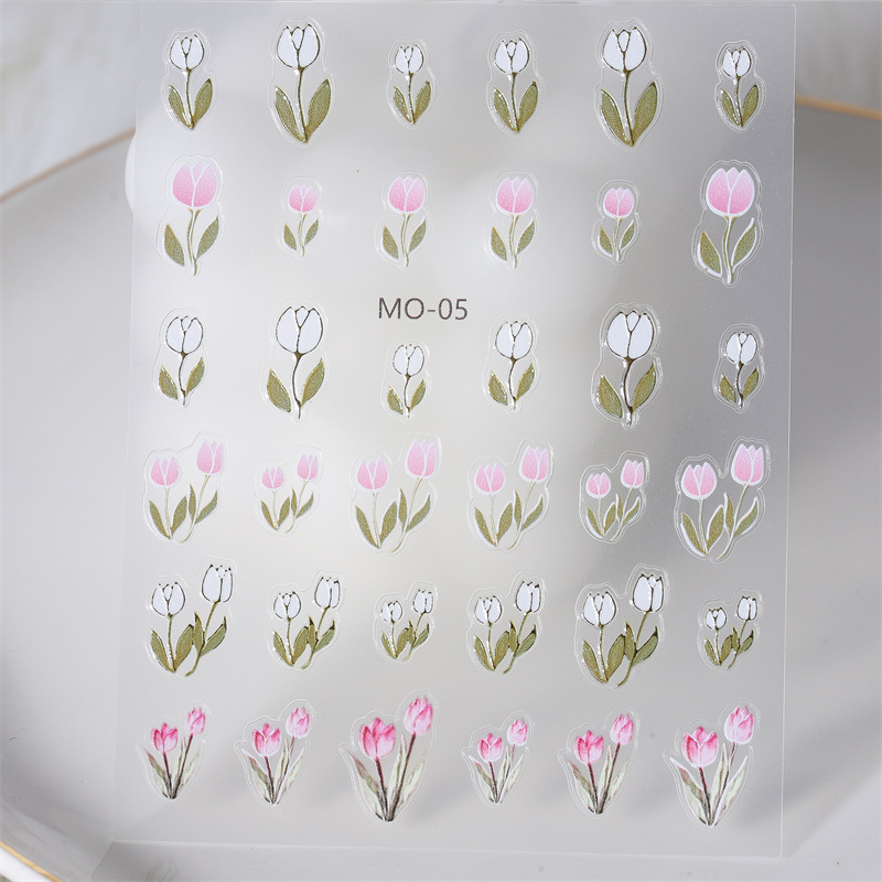 새로운 공예 네일 아트 5D 릴리프 페이스트 종이 그물 빨간 튤립 토끼 레트로 중공 릴리프 스테레오 네일 페이스트스토어 가기