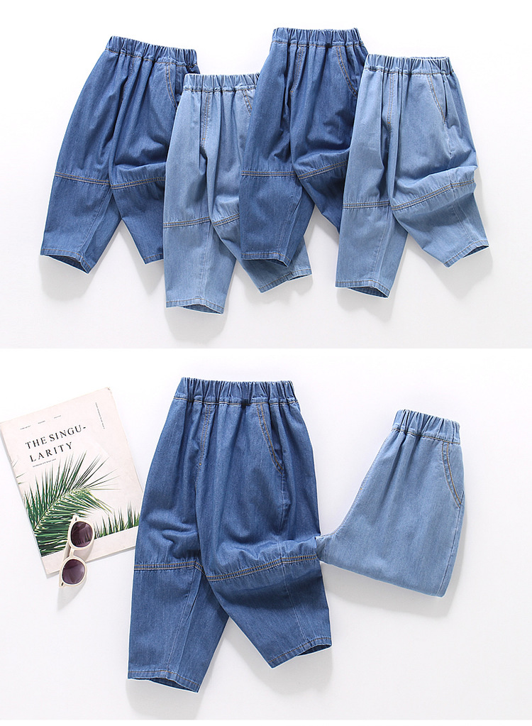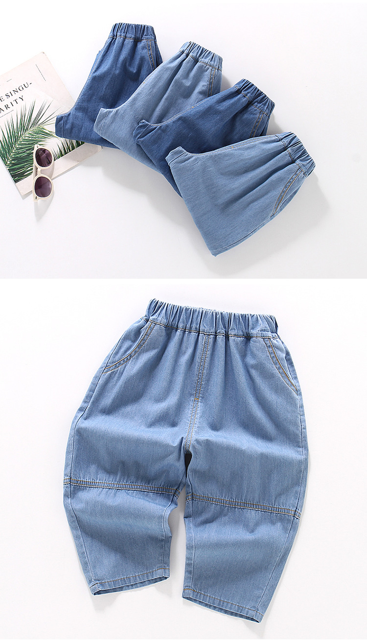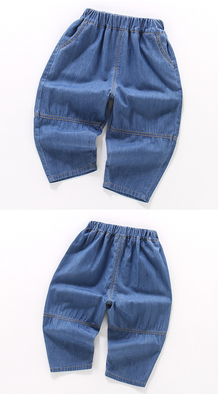 올코튼 남아 데님 블루머 여름 착용 얇은 어린이 느슨한 스트레이트 팬츠 남아 베이비 소프트 데님 트렌디 팬츠