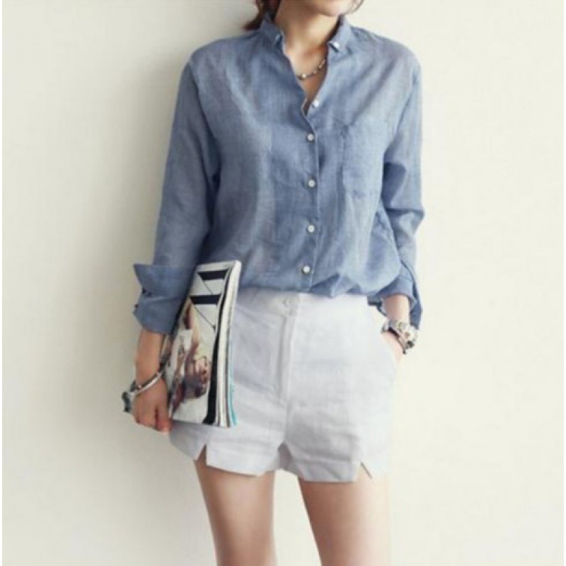 2023 여성 국경 새로운 여성 패션 캐주얼 코튼 린넨 셔츠 여성의 긴 소매 느슨한 얇은 태양 보호 의류스토어 가기