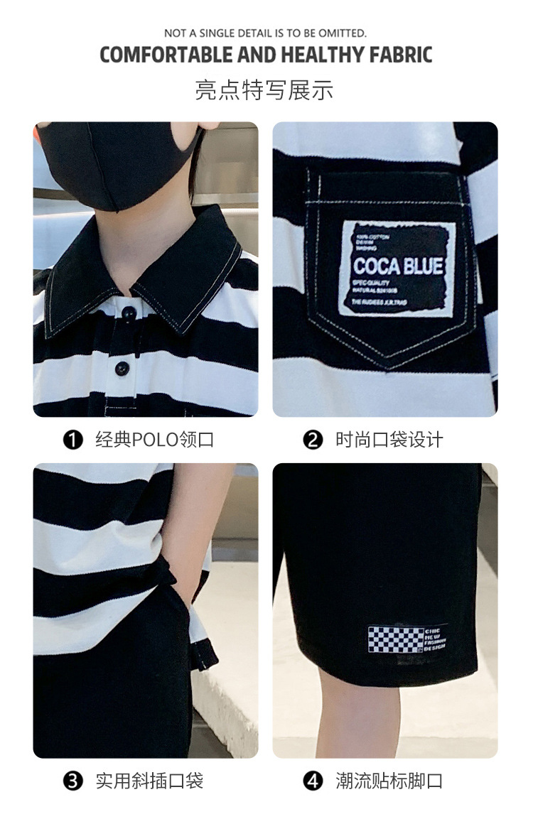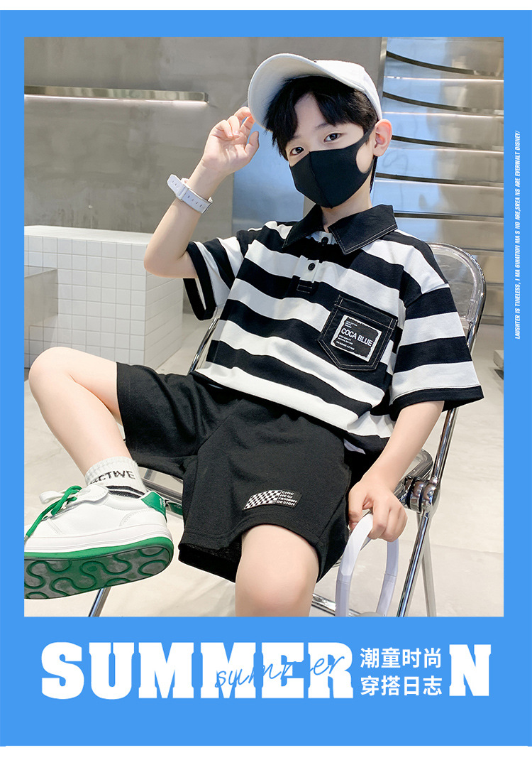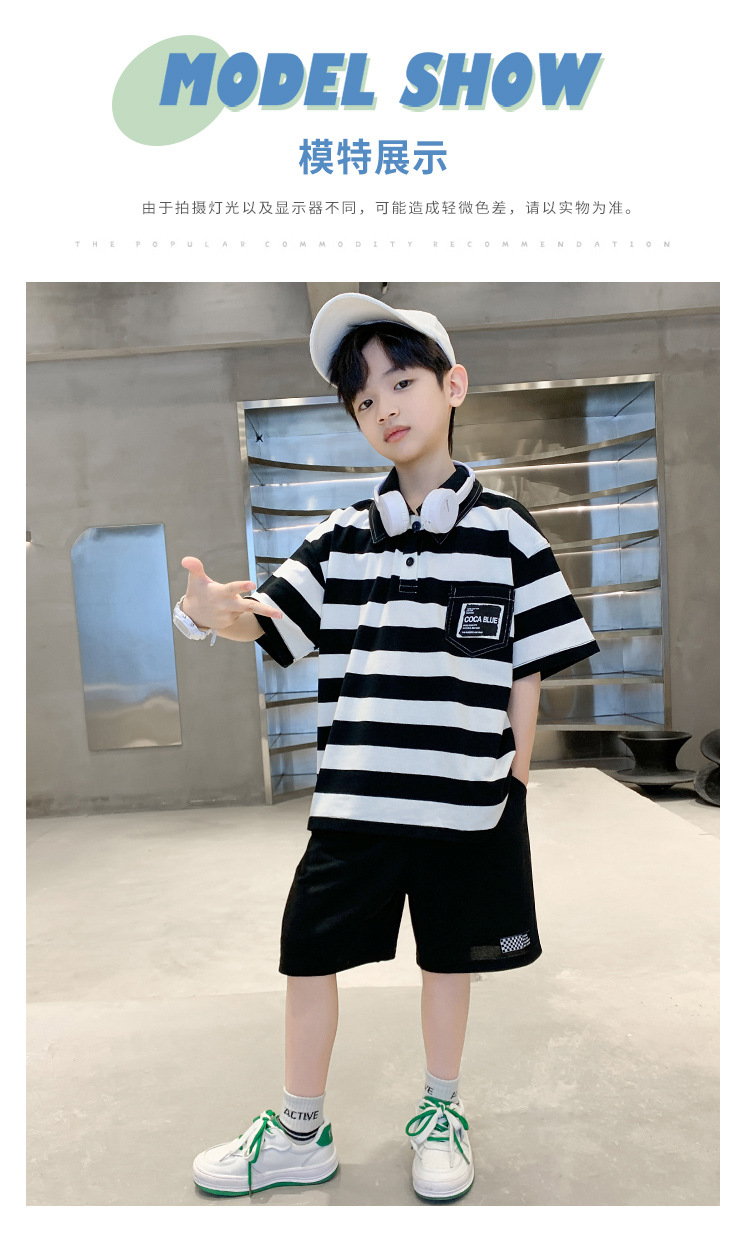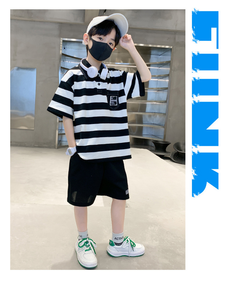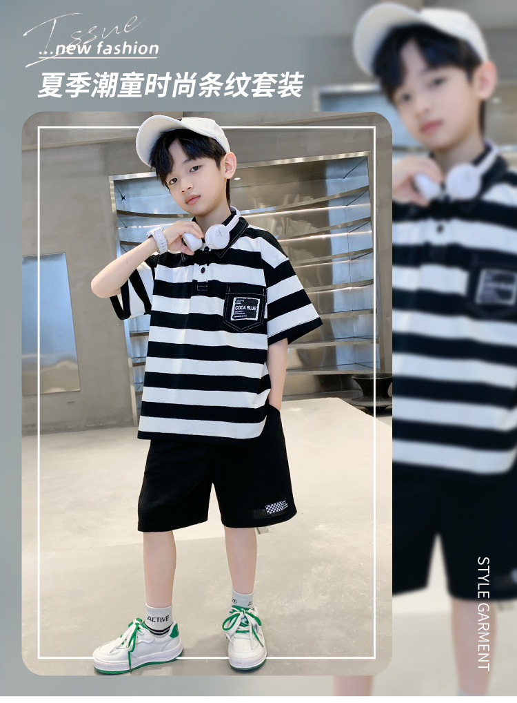 소년 여름 정장 스트라이프 폴로 셔츠 2022 새로운 반팔 어린이 여름 스포츠 투피스 세트 큰 어린이 유행스토어 가기