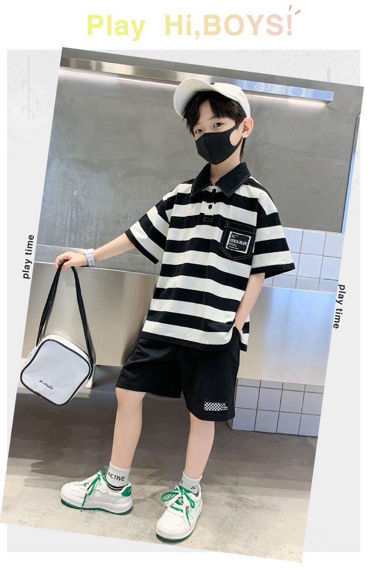 남아 여름복 세트 스트라이프 POLO 셔츠 2026 신상 반팔 아동 여름 스포츠 투피스 세트 큰아이들을 위한 트렌디한 의상