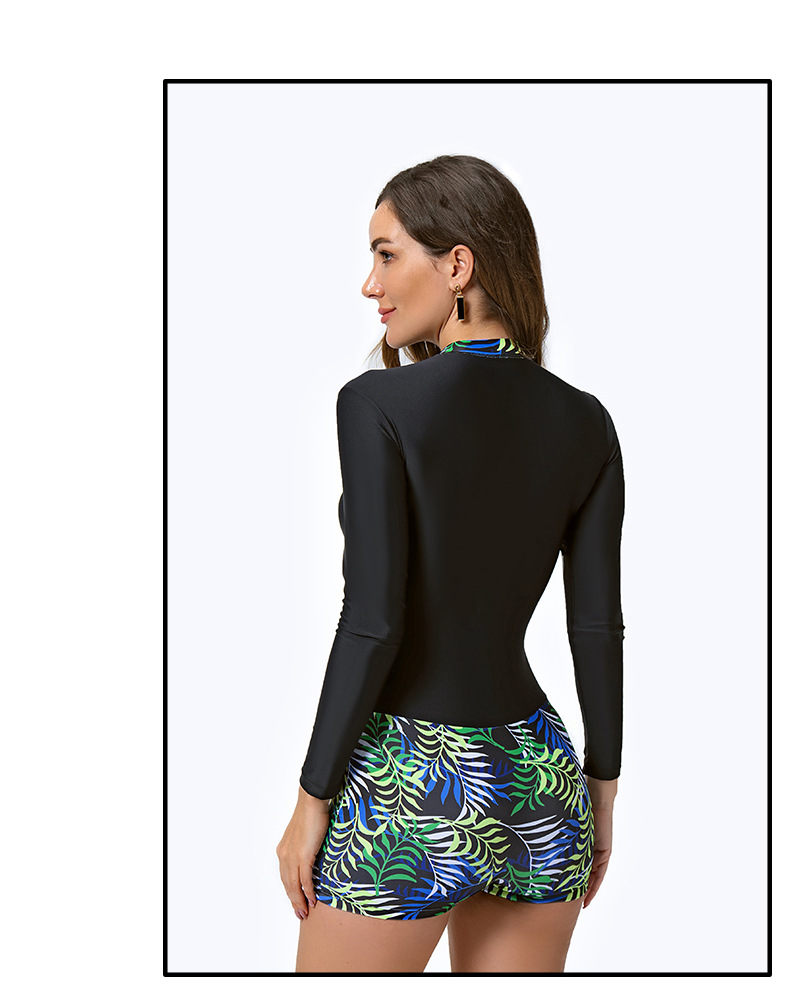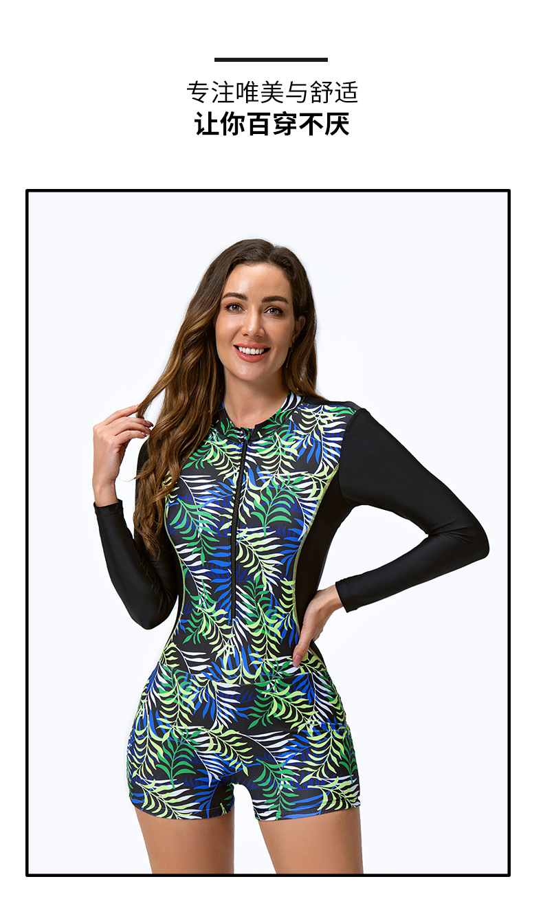 아마존 원피스 스포츠 수영복 여성용 유럽과 미국 지퍼 긴 소매 서핑 세트 보수적 인 플랫 앵글 다이빙 세트 새로운 수영복스토어 가기