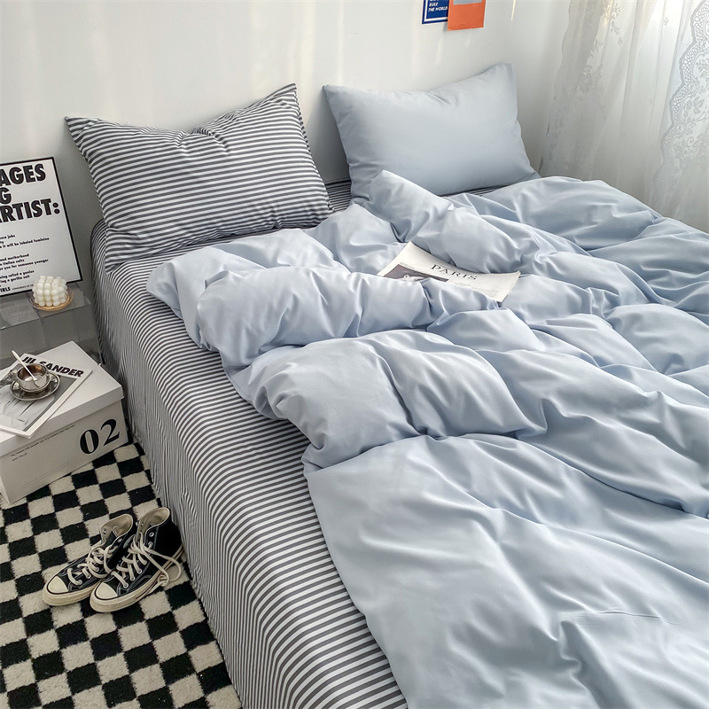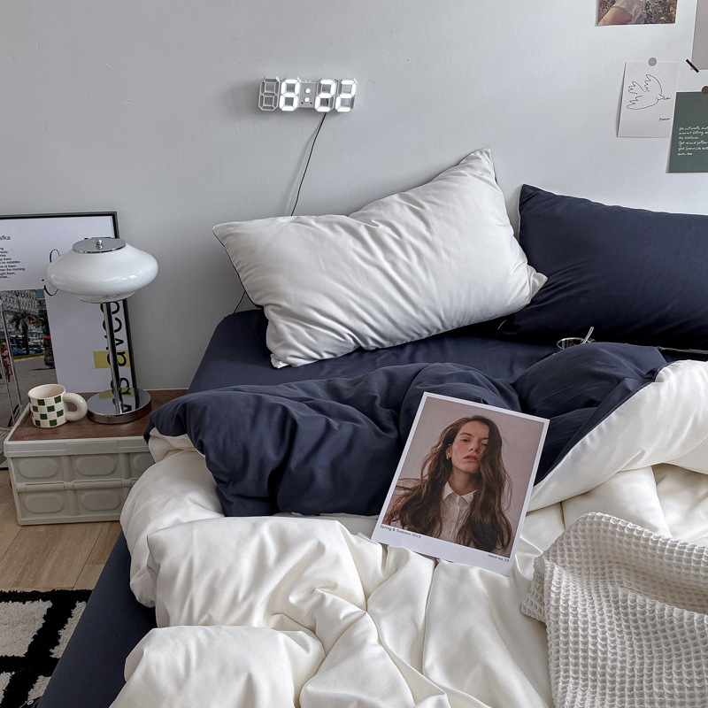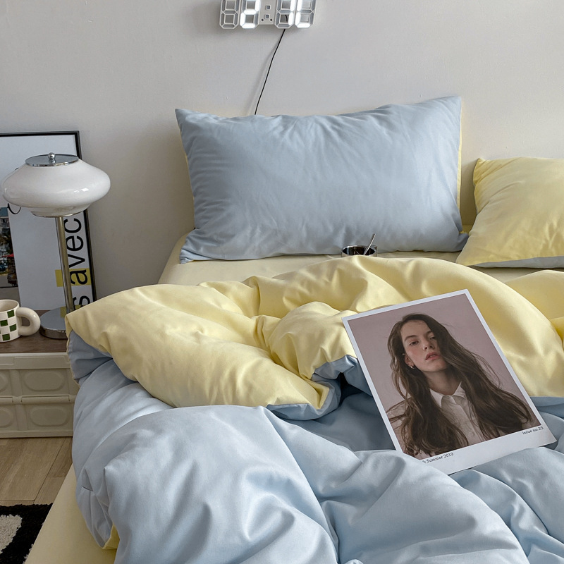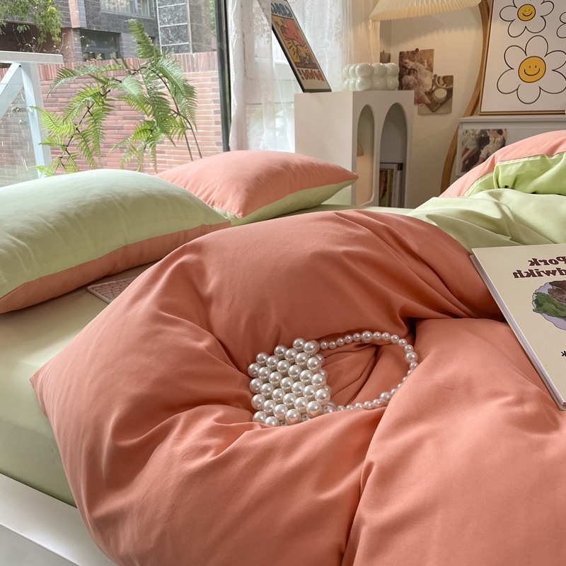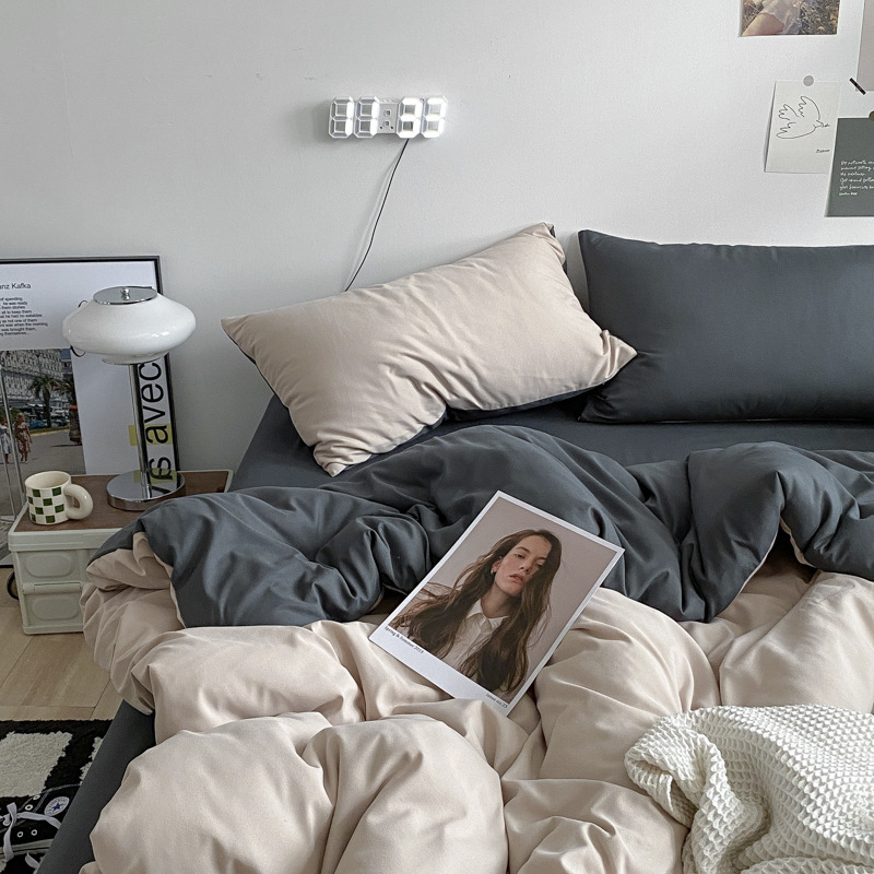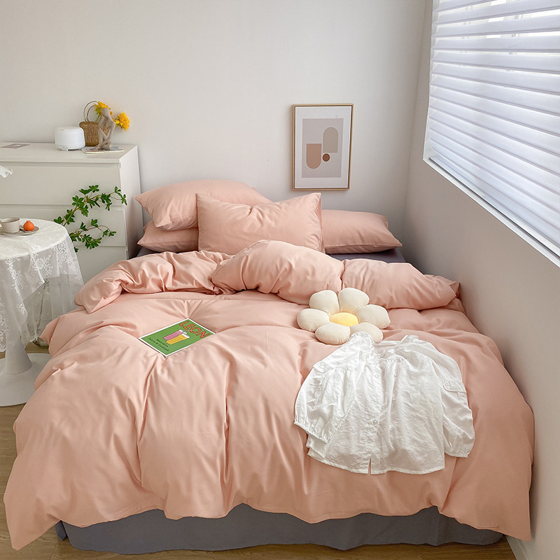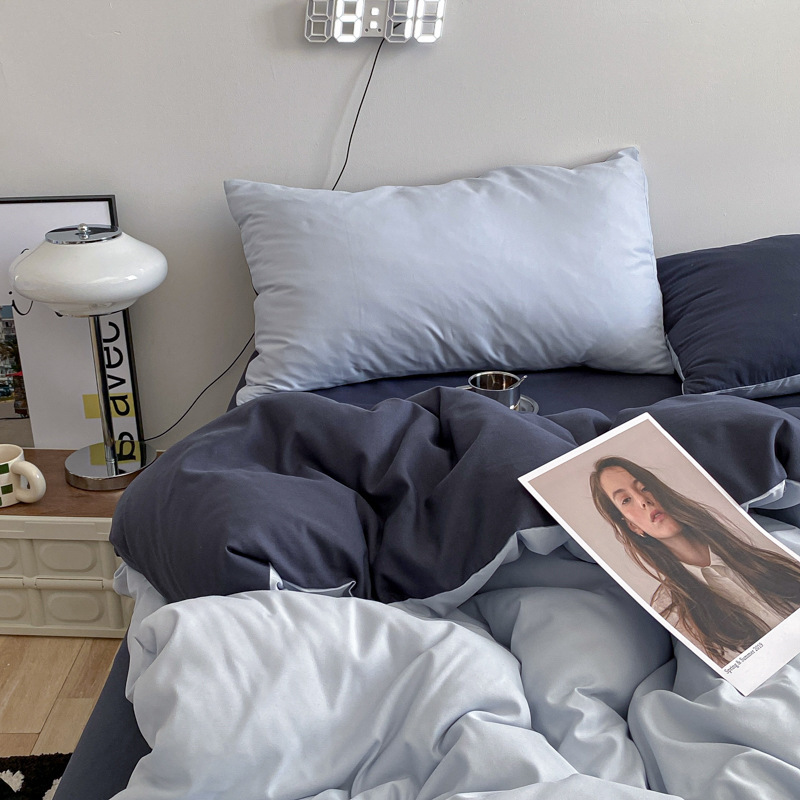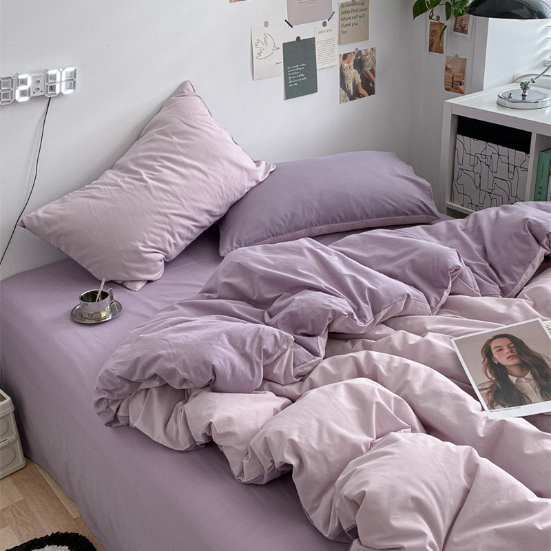 인스 워시드 코튼 4종 세트 단색 이중 배색 침대 시트 이불 커버 매트리스 커버 침대 4종 세트 사계절용