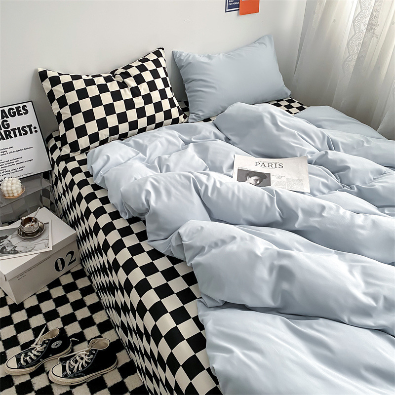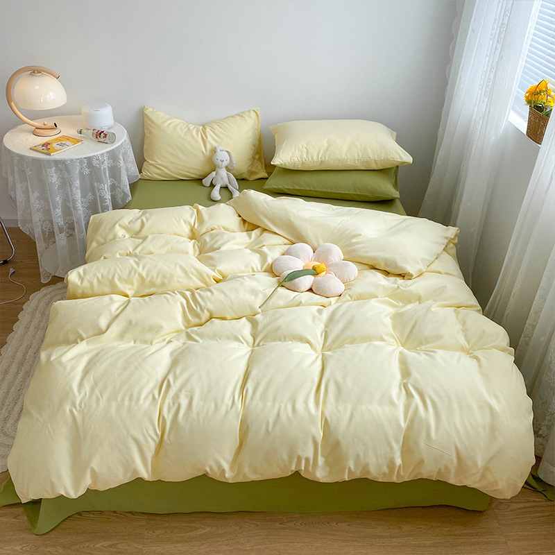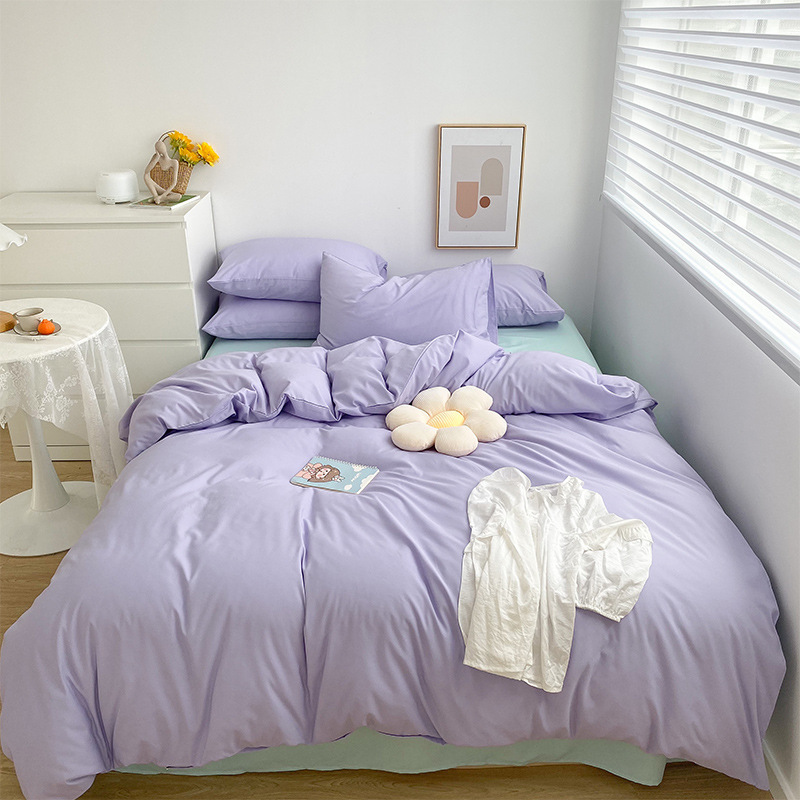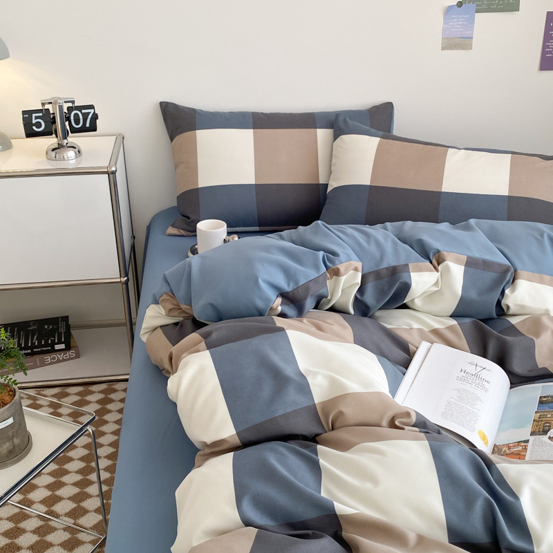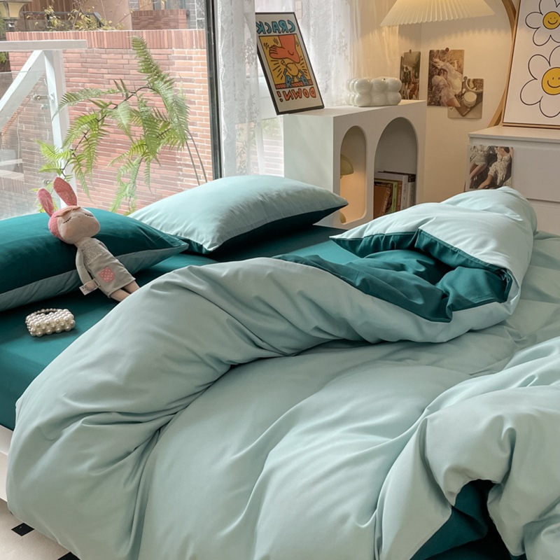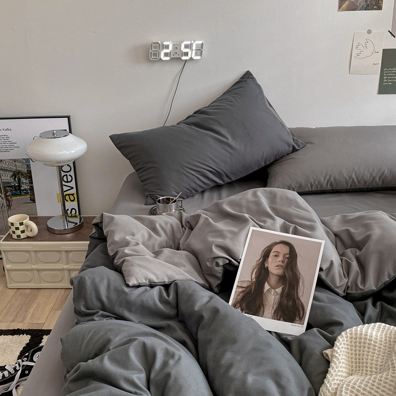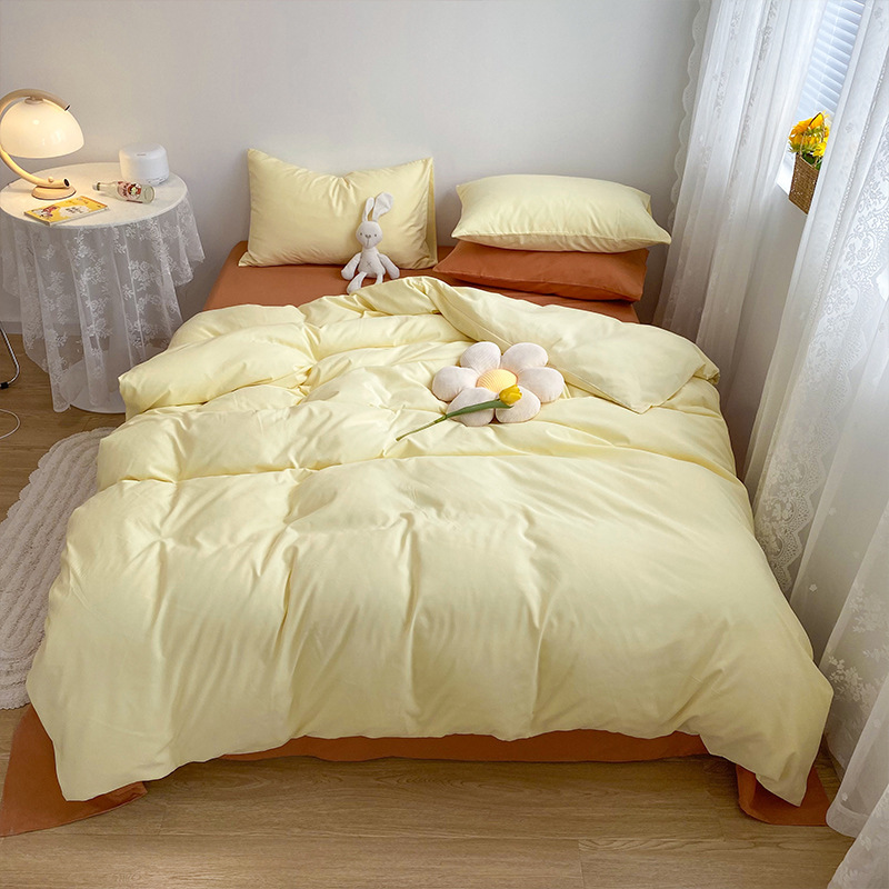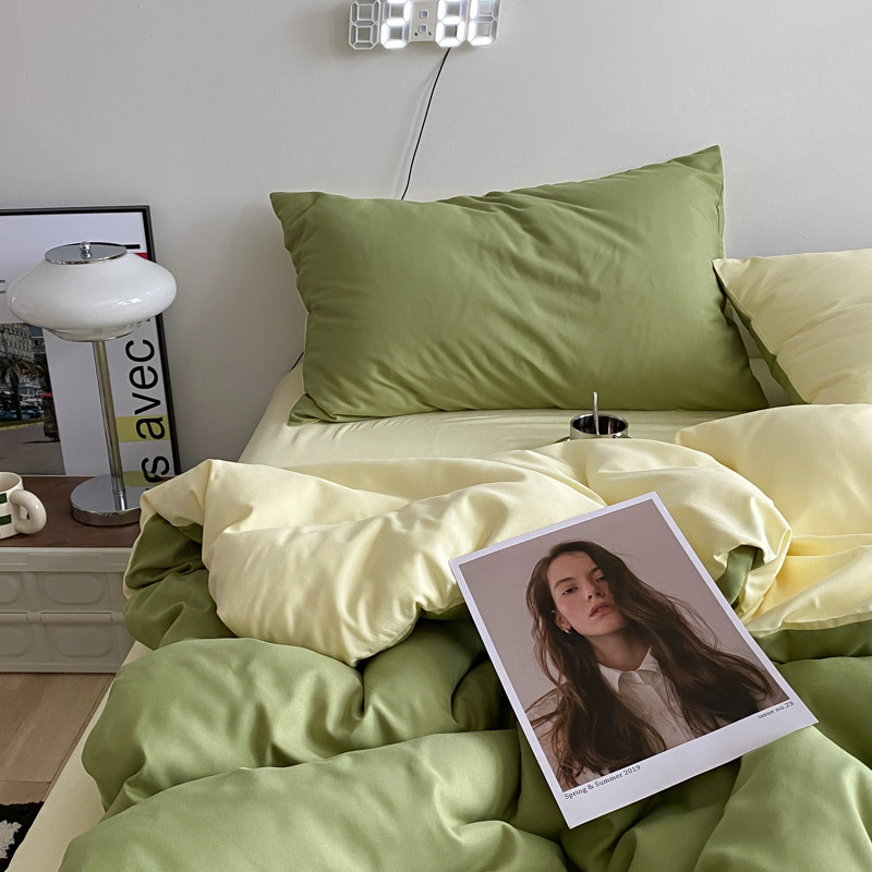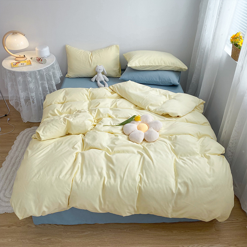 인스 워시드 코튼 4종 세트 단색 이중 배색 침대 시트 이불 커버 매트리스 커버 침대 4종 세트 사계절용