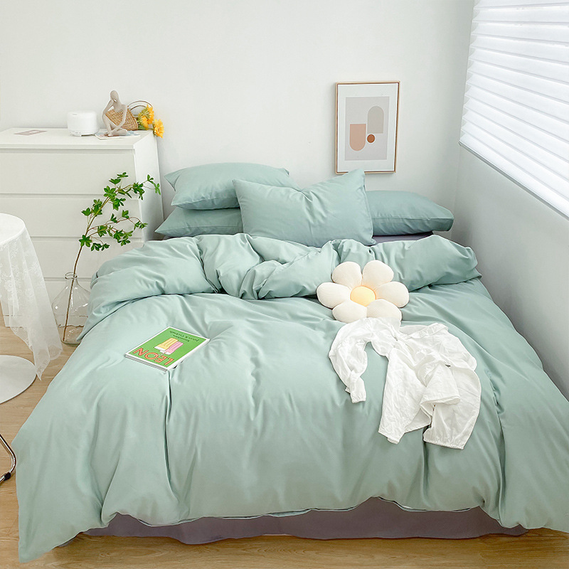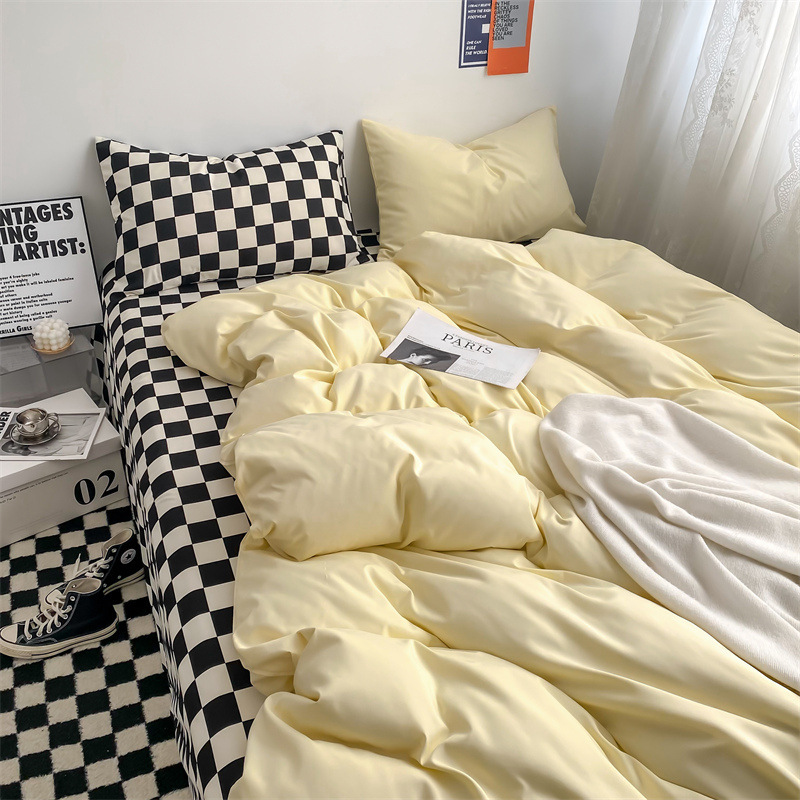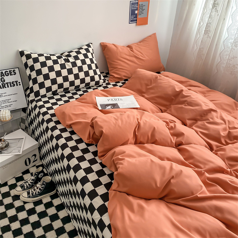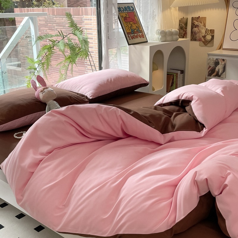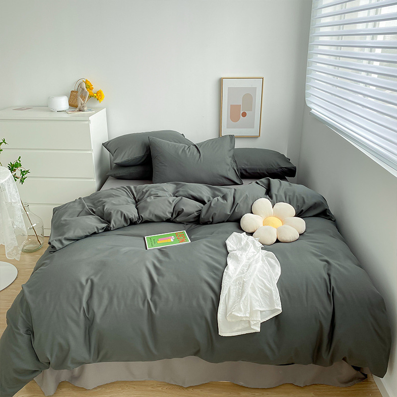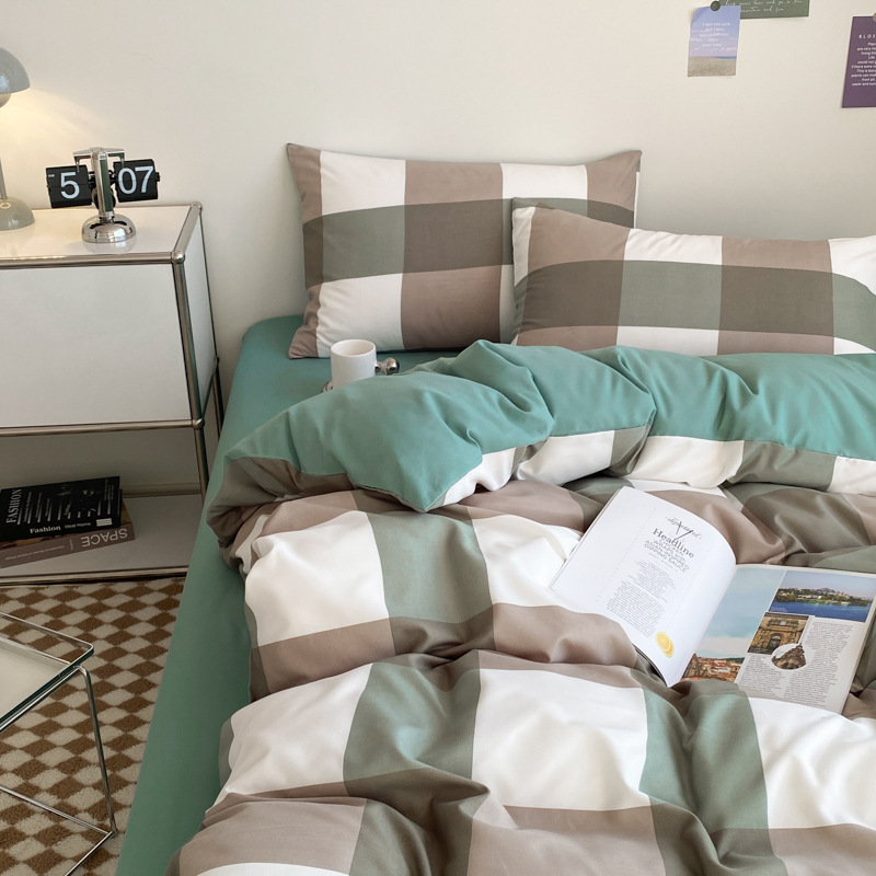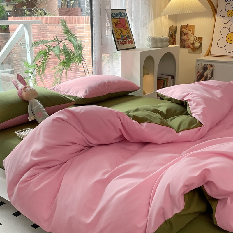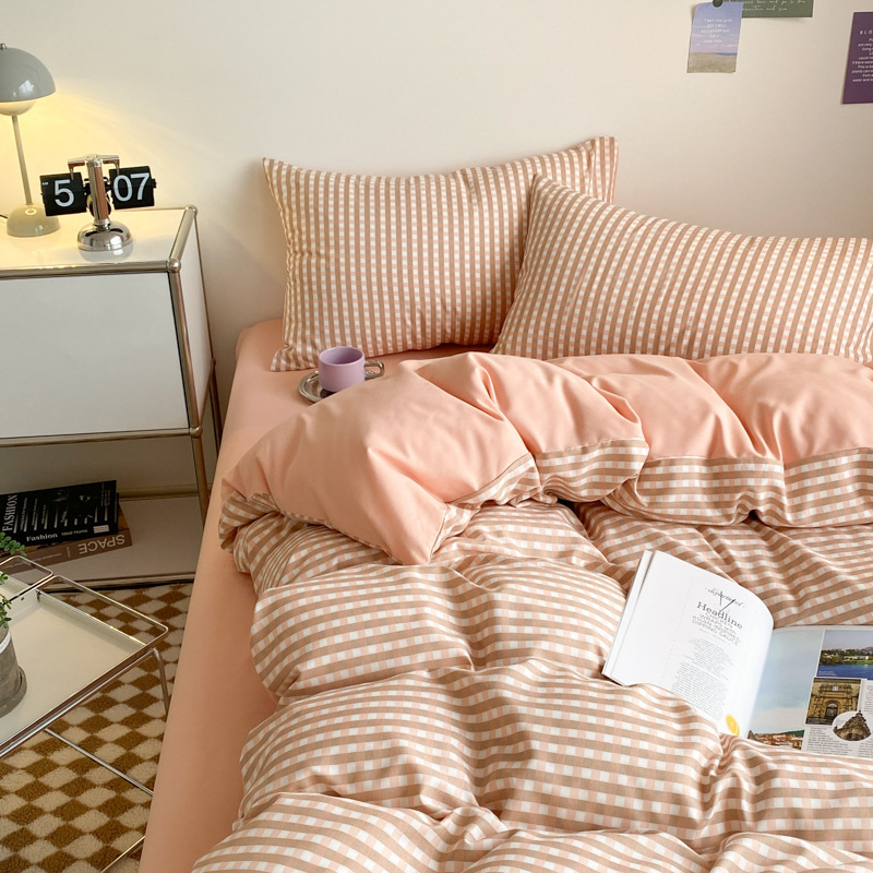인스 워시드 코튼 4종 세트 단색 이중 배색 침대 시트 이불 커버 매트리스 커버 침대 4종 세트 사계절용