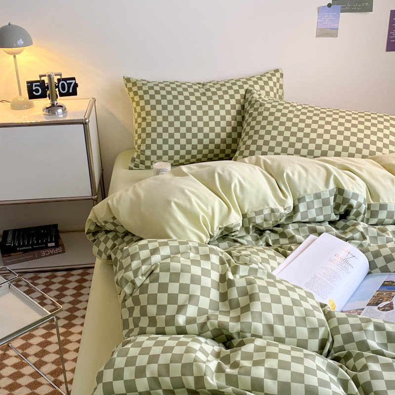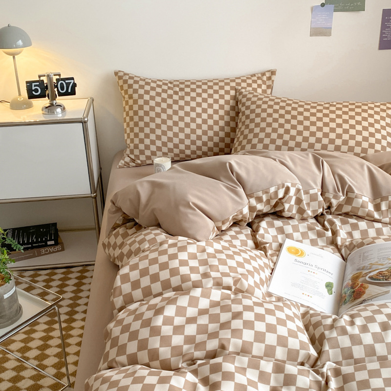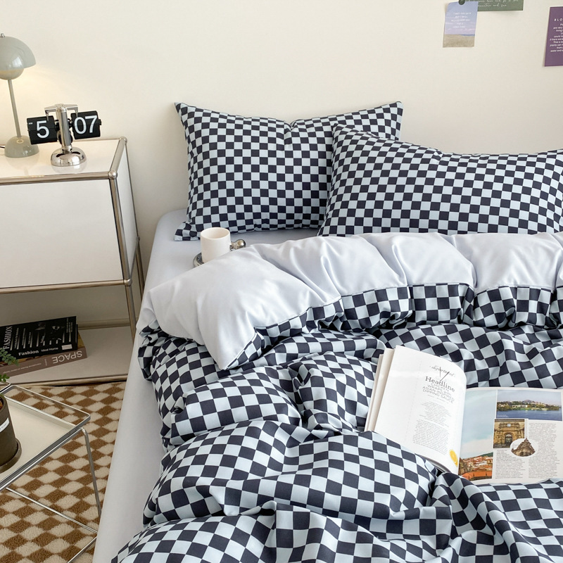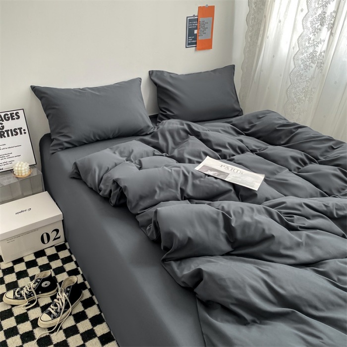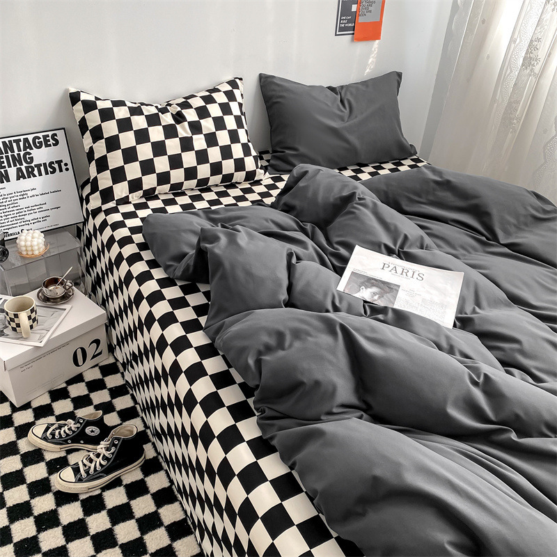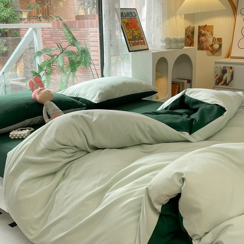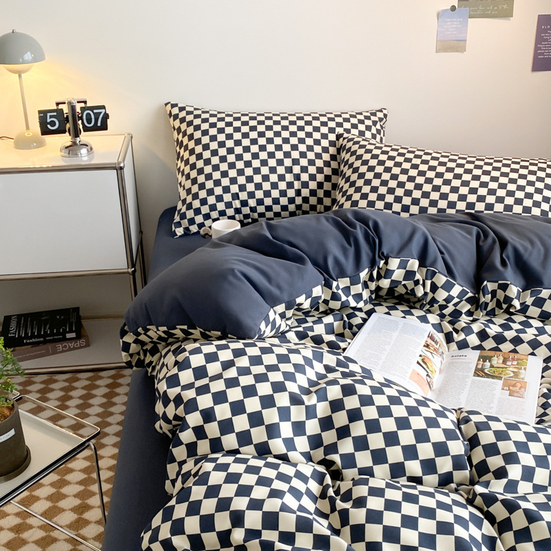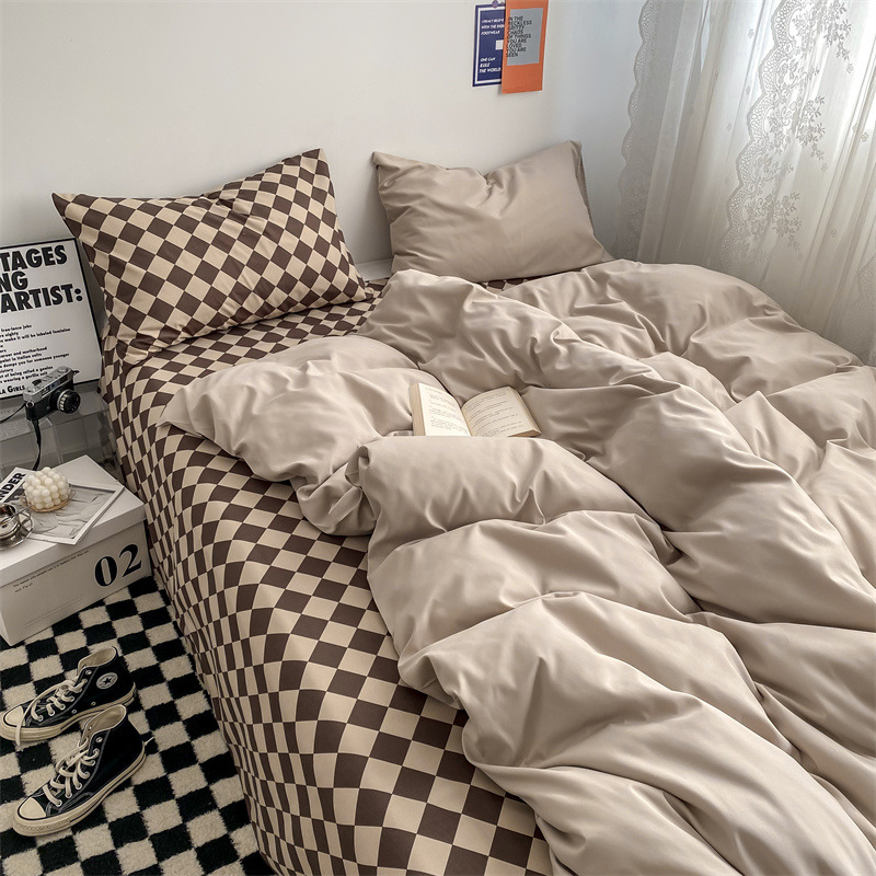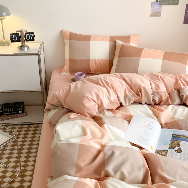 인스 워시드 코튼 4종 세트 단색 이중 배색 침대 시트 이불 커버 매트리스 커버 침대 4종 세트 사계절용