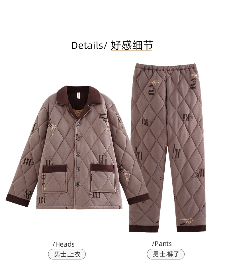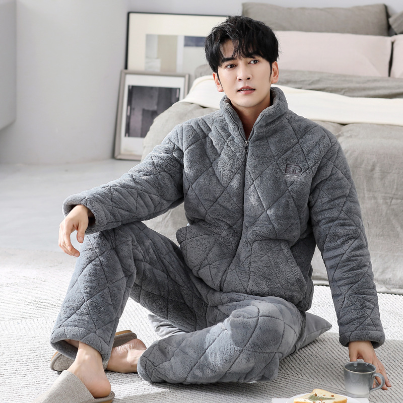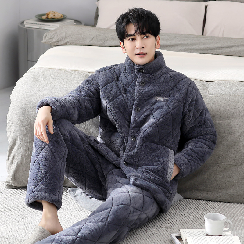 3 층 벨벳 코튼 니트 코튼 패딩 따뜻한 남성 잠옷 겨울 긴 소매 느슨한 플러스 사이즈 외부에서 착용 가능