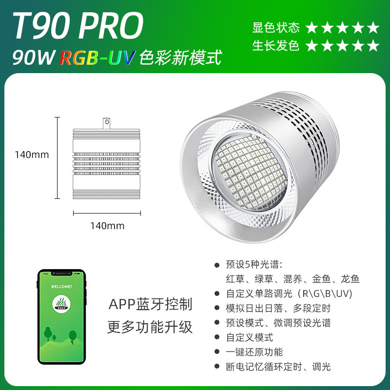 웰칸 풀 스펙트럼 아쿠아 잔디 통 T90WRGB 수족관 아쿠아 잔디 탱크 AT5 아쿠아 잔디 라이트스토어 가기