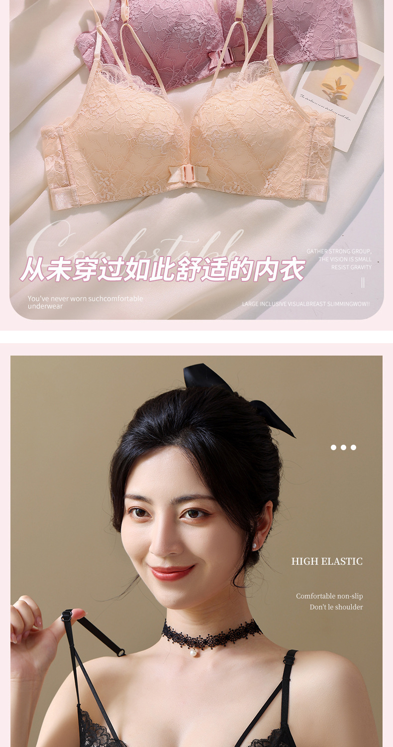 어퍼 얇은 하부 두꺼운 스틸 링 여아 브라 여름 슬링 백 속옷 여성용 유럽, 미국 및 동남아시아 앞 버클 브라스토어 가기