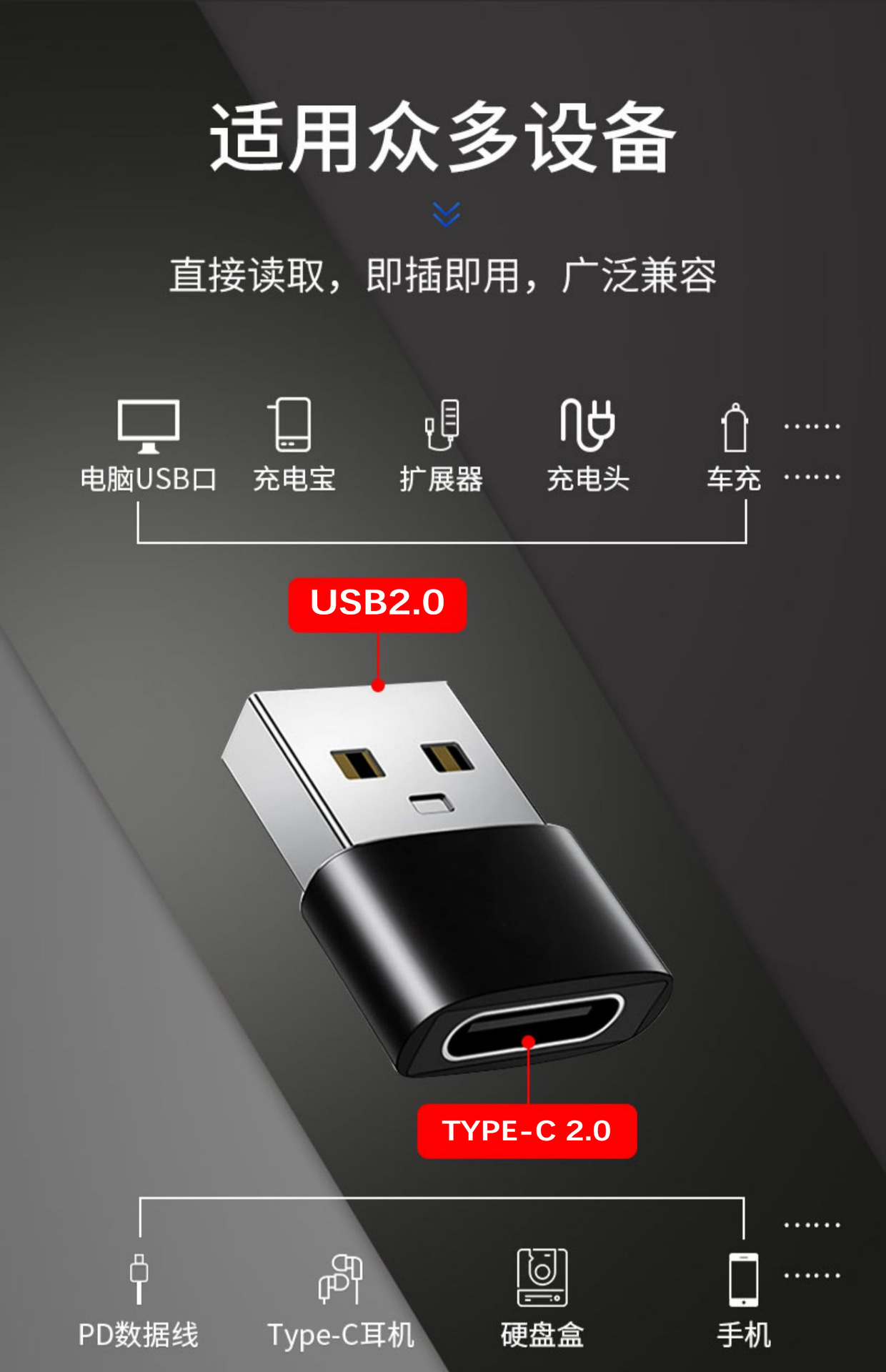 타입-C 암-USB2.0 OTG 어댑터 휴대폰 이어폰 PD 변환기 고속 충전 TPC 변환 플러그스토어 가기