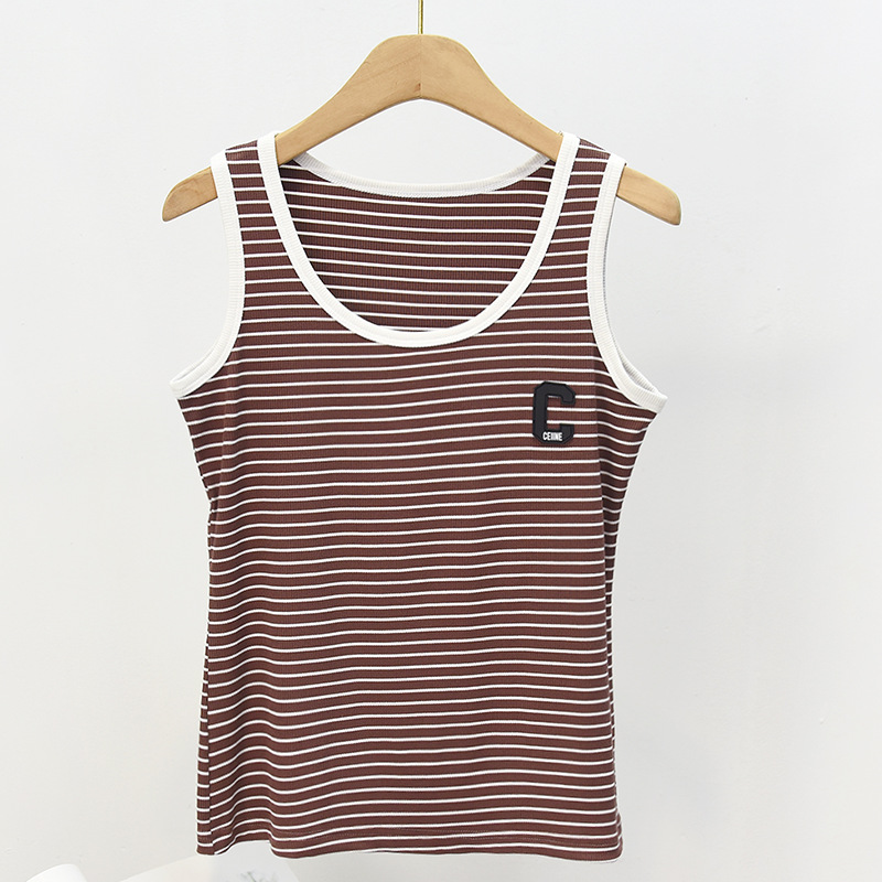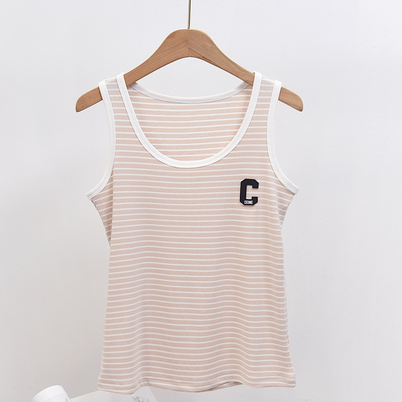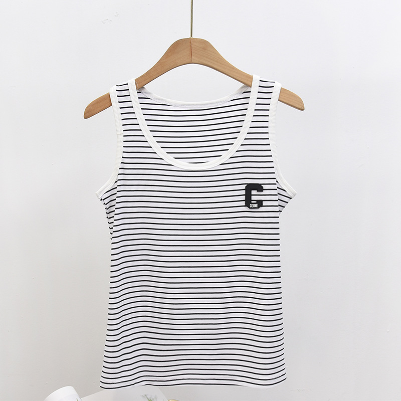 봄과 여름 얇은 스트라이프 캐미솔 여성용 이너웨어 아우터 슬림핏 라운드넥 모달 면 여성용 조끼 베이스 셔츠