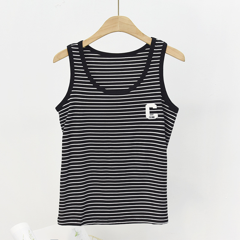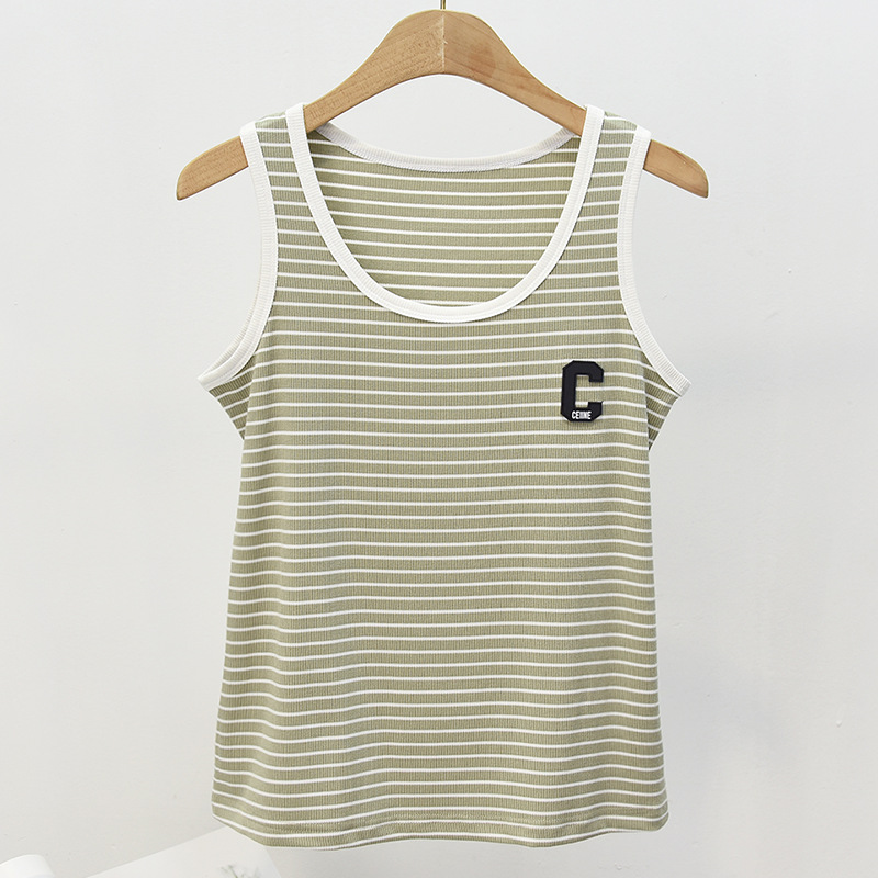 봄과 여름 얇은 스트라이프 캐미솔 여성용 이너웨어 아우터 슬림핏 라운드넥 모달 면 여성용 조끼 베이스 셔츠스토어 가기