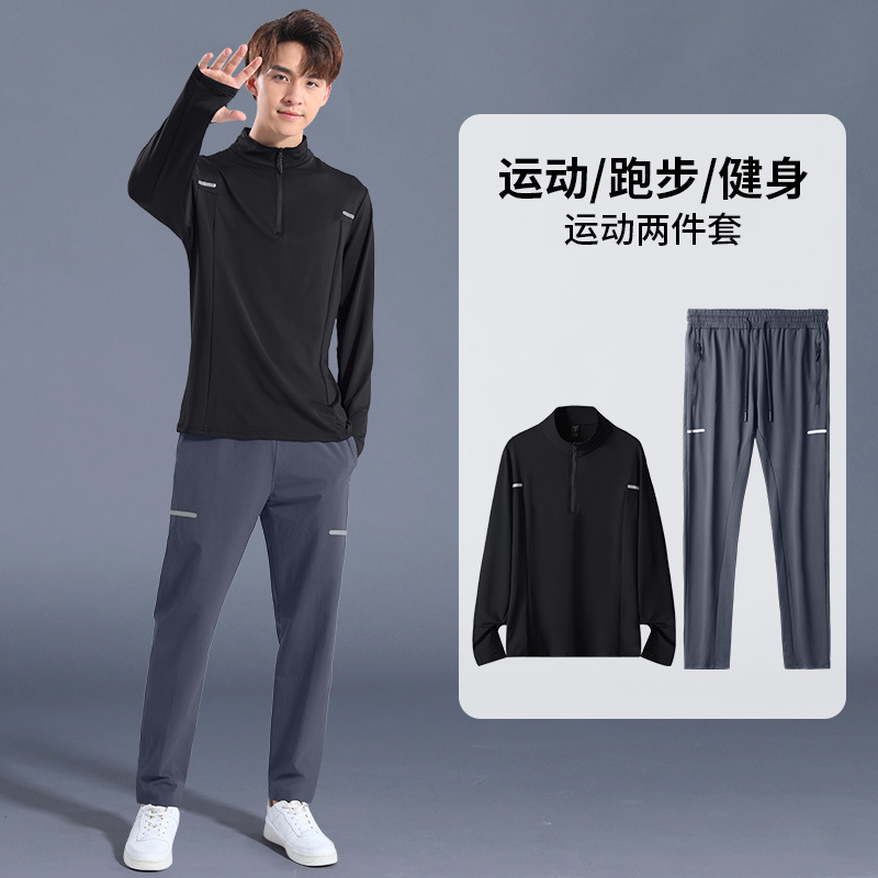 스포츠 세트 남자 가을 겨울 기모 아침 달리기 레저 야외 빠른 건조 달리기 옷 체육관 느슨한 농구 훈련