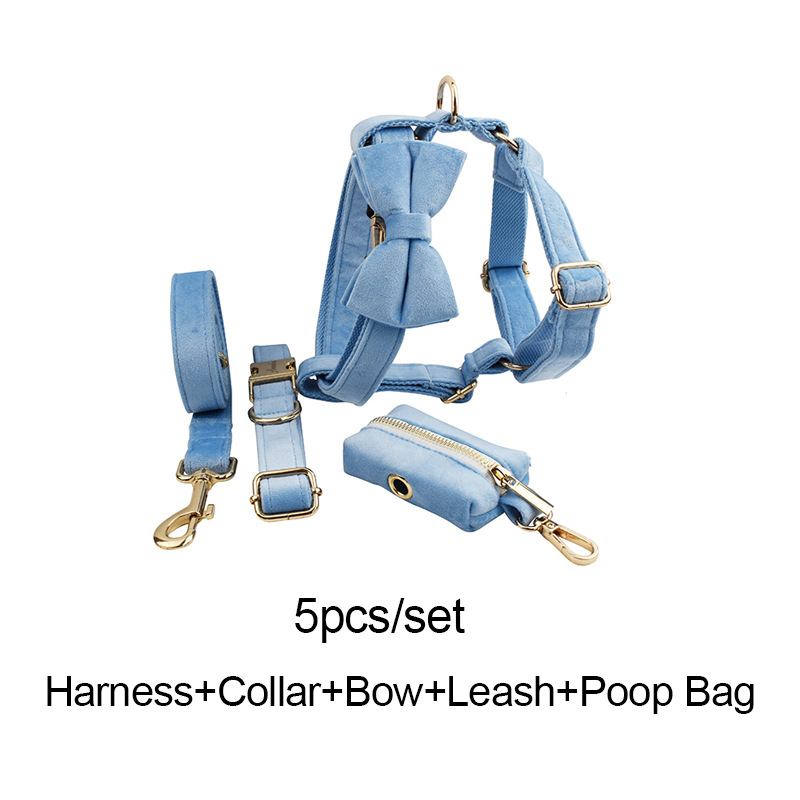하늘색 벨벳 애완 동물 가슴 스트랩 애완 동물 목걸이 활 개 목걸이 가죽 끈 개 체인 레터링 원피스 머리스토어 가기