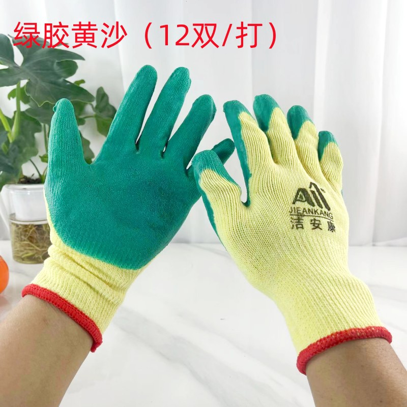 Jie Ankang 주름진 고무 라인 장갑 황사 녹색 두꺼운 고무 내마모성 미끄럼 방지 현장 작업 보호 취급 작업스토어 가기