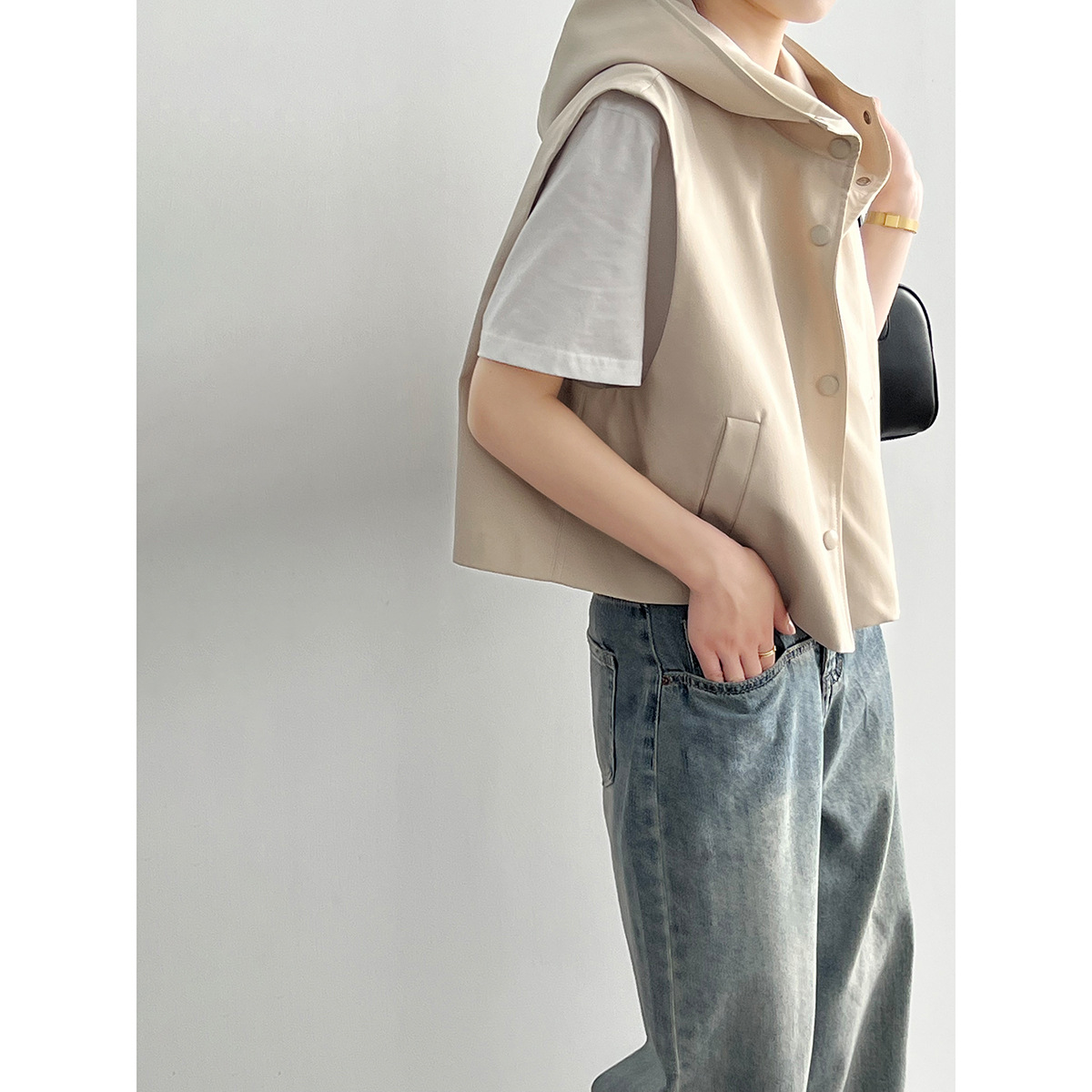Yanshuang 캐주얼 후드 조끼 여성 가을 새로운 느슨한 민소매 조끼 기질 짧은 탑 8007