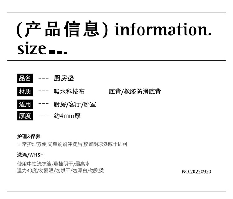 주방 특수 먼지 방지 및 얼룩 방지 바닥 매트 규조 진흙 흡수 매트 미끄럼 방지 내유성 카펫 닦지 않는 바닥 매트 가정용스토어 가기
