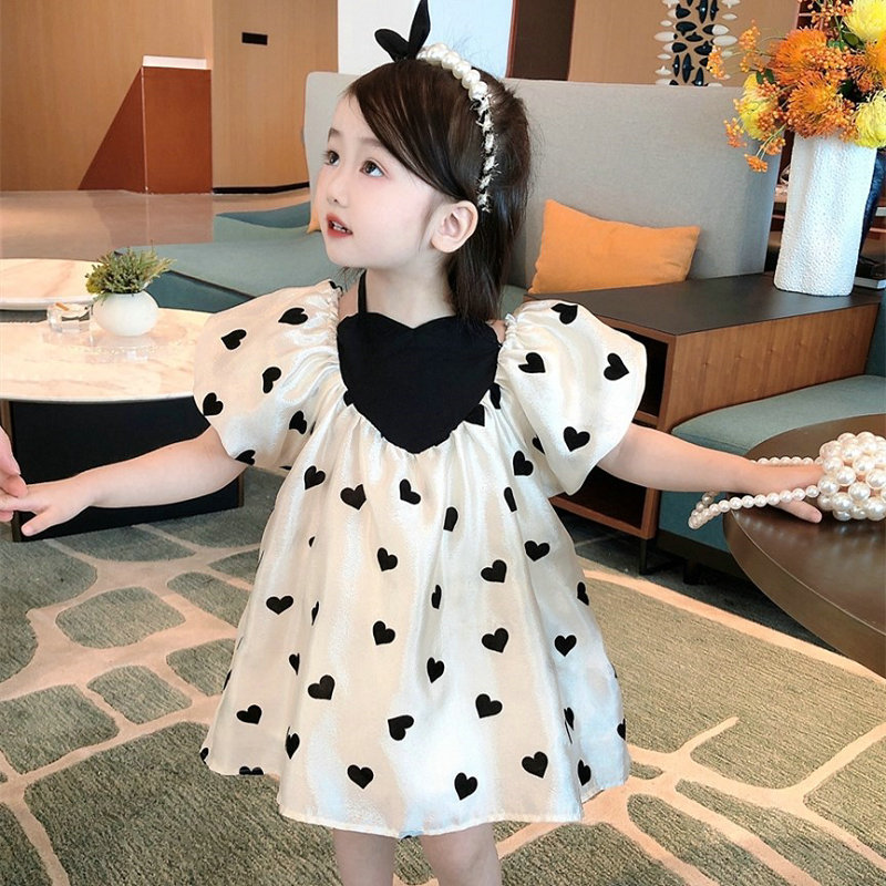 여아 스커트 퍼프 슬리브 사랑 원피스 공주 스커트 23 여름 새로운 대외 무역 3-8 세 아동복