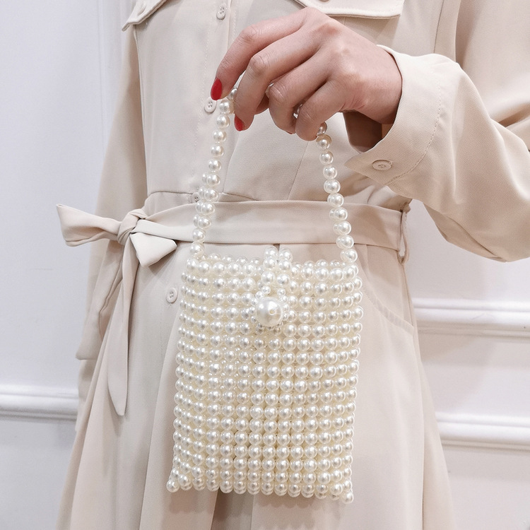 2023 여름 새 진주 가방 여성용 핸드백 수제 DIY 페르시 슈퍼 요정 인기있는 손 운반 작은 사각형 가방