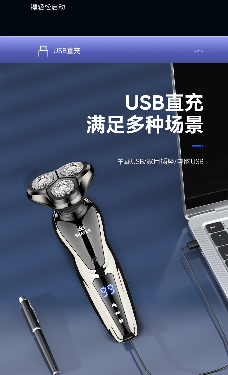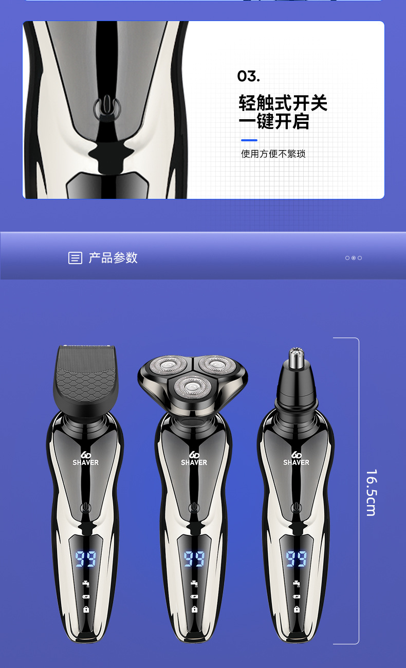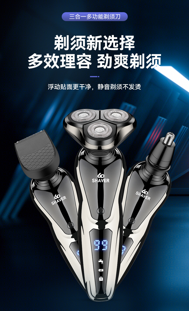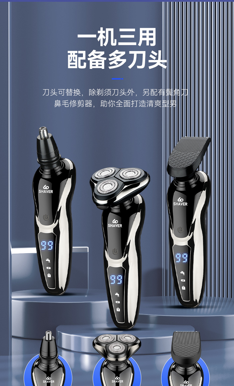 디지털 디스플레이 Shuangke 전기 면도기 3-in-1 남성용 다기능 면도기 휴대용 가정용 충전식 수염 면도기