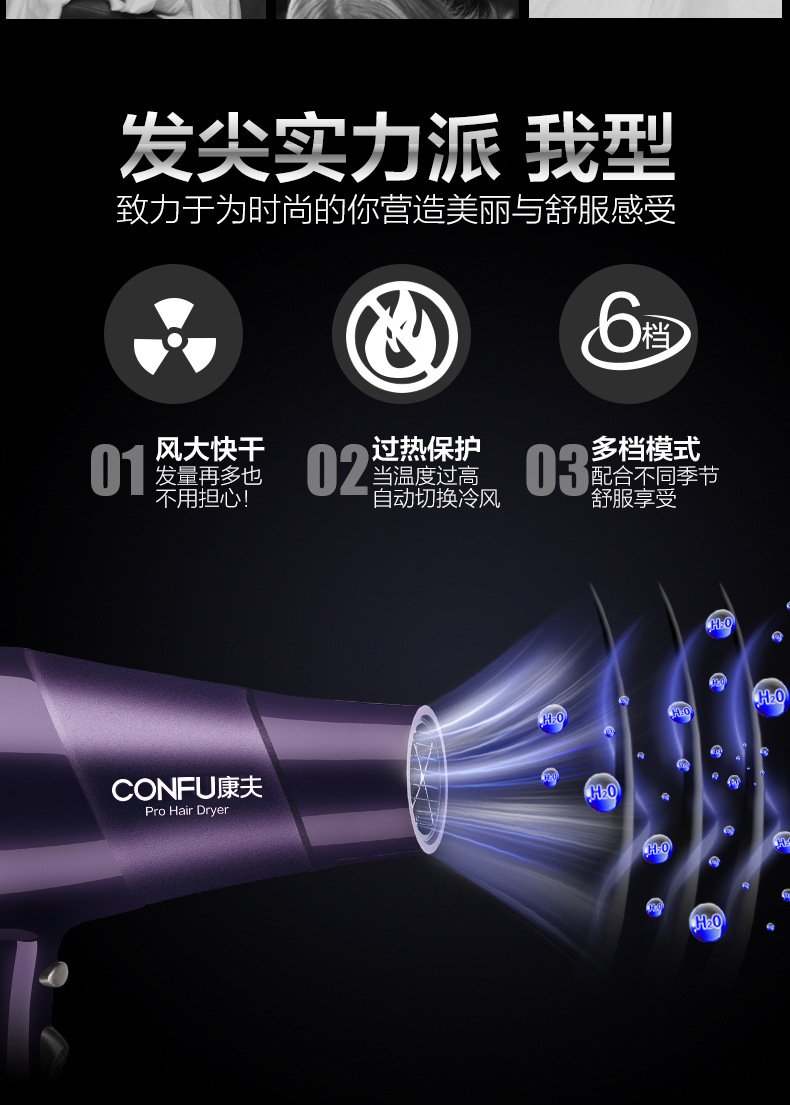Kangfu 9897 이발소 고출력 헤어 드라이어 헤어 살롱 전문 냉기 및 열풍 가정용 에어 드럼 2300W스토어 가기