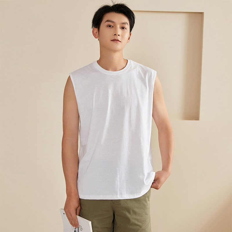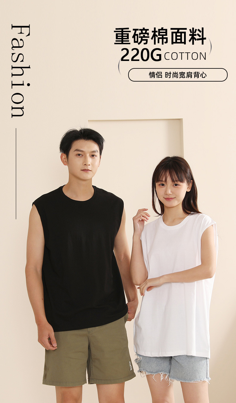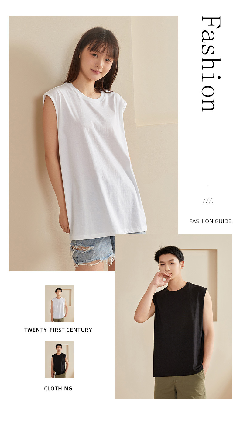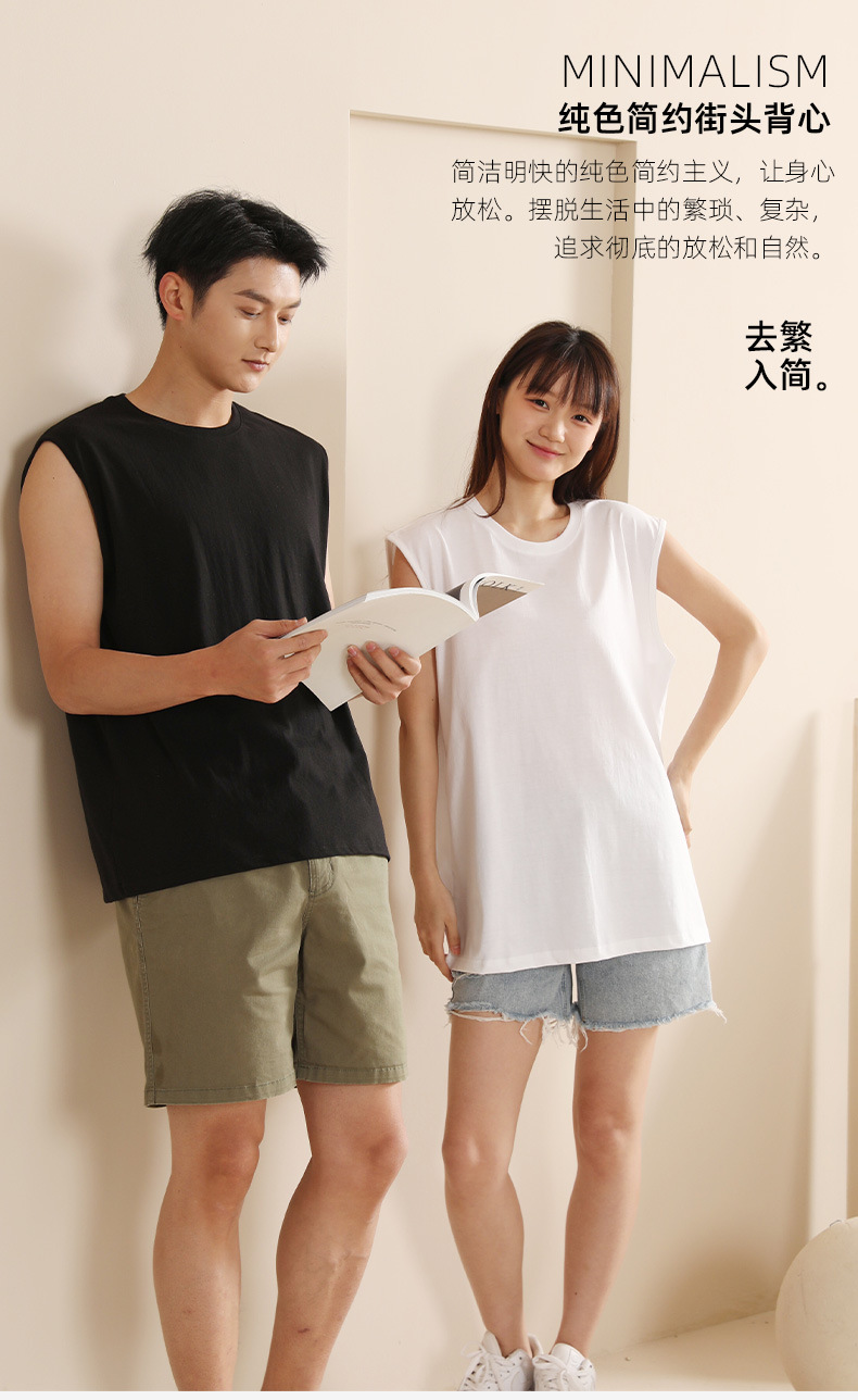 민소매 남자의 티셔츠 미국 복고풍 패션 브랜드 커플의 플러스 사이즈 와이드 숄더 화이트 양복 조끼 여름 무거운 면 여성 조끼스토어 가기