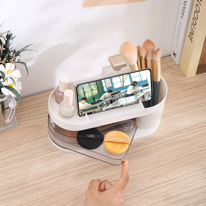 Liheng 투명 데스크탑 보관함 회전식 데스크 펜 카트리지 플라스틱 미니 보관함 화장품 보관함 대형스토어 가기