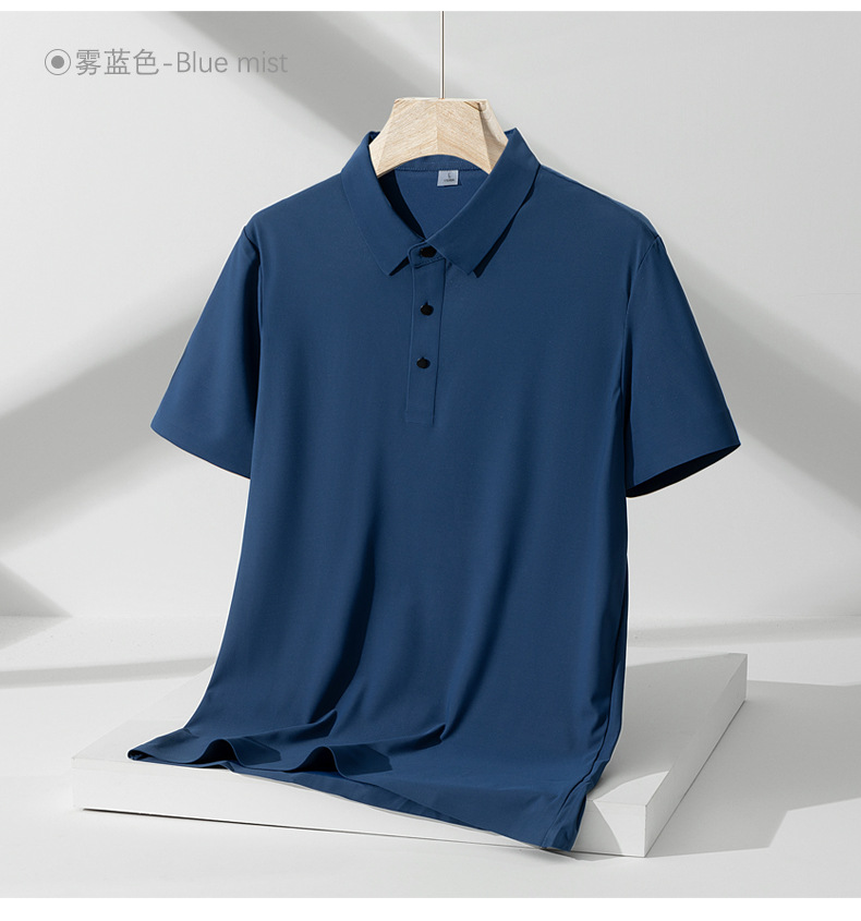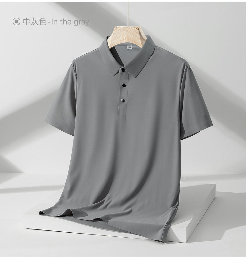 아이스 실크 심리스 폴로 셔츠 쿨 센스 남성용 여름 얇은 단색 청소년 슬림핏 비즈니스 캐주얼 라펠 티셔츠 남성용스토어 가기