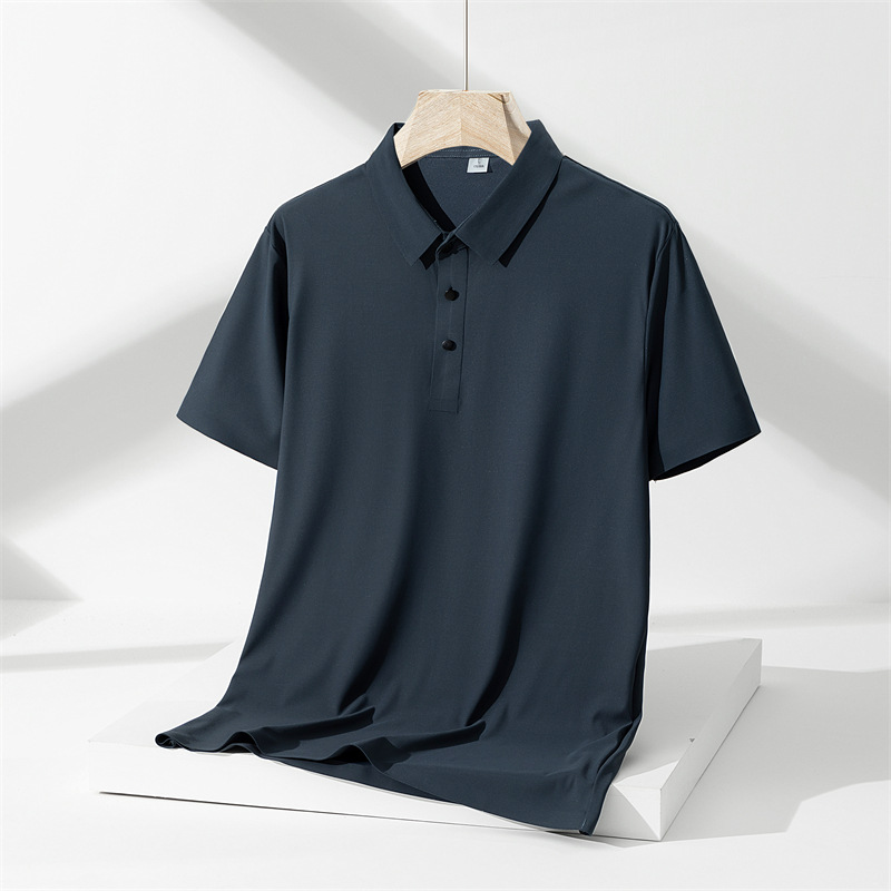 아이스 실크 심리스 폴로 셔츠 쿨 센스 남성용 여름 얇은 단색 청소년 슬림핏 비즈니스 캐주얼 라펠 티셔츠 남성용