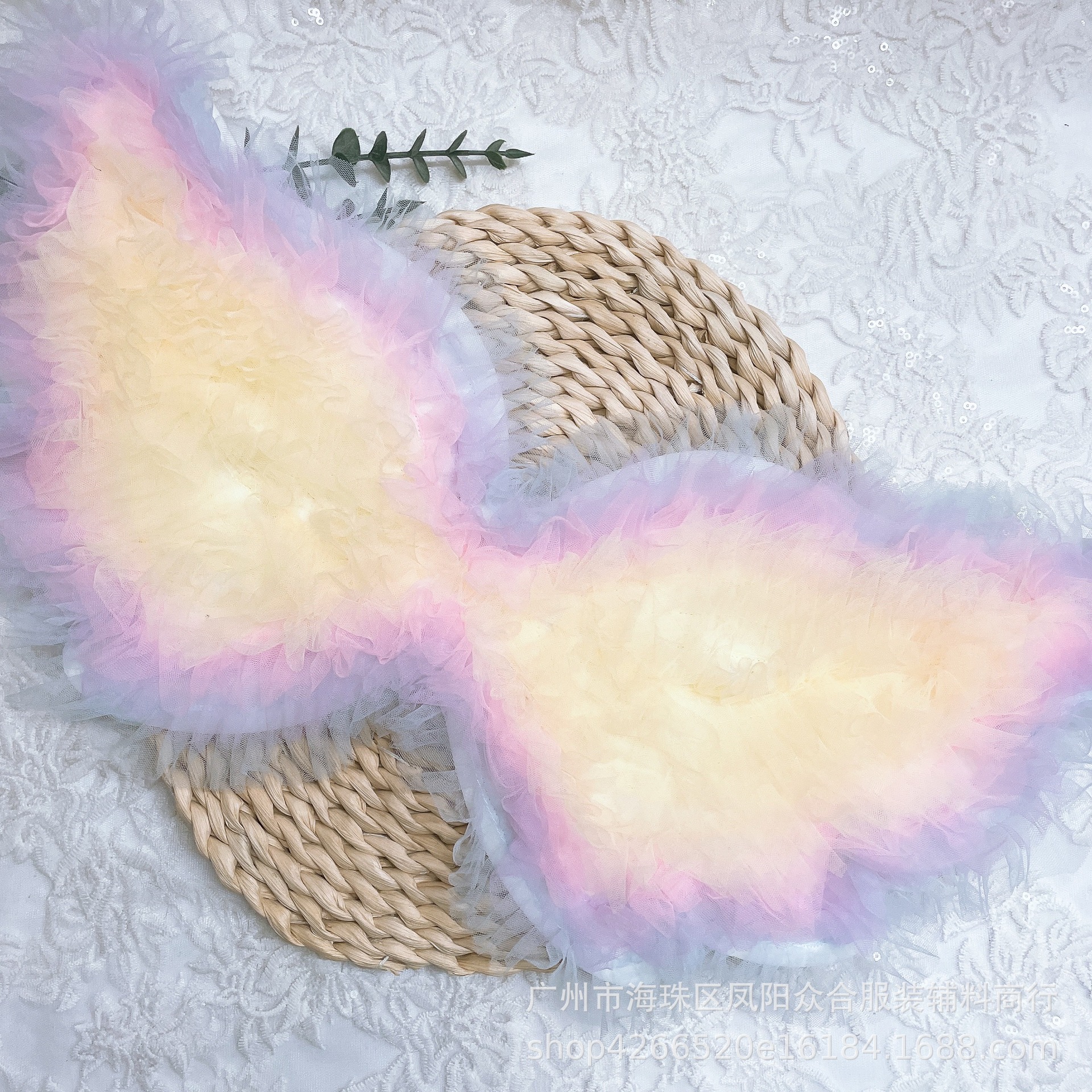 공장 직접 공급 무지개 색 거즈 날개 아플리케 어린이 원피스 공주 치마 다시 장식 패치 액세서리스토어 가기