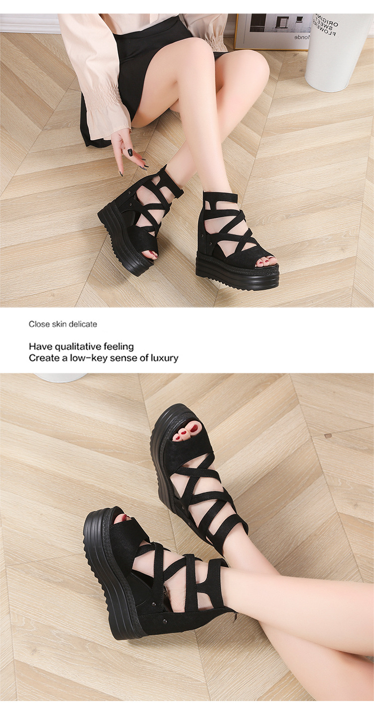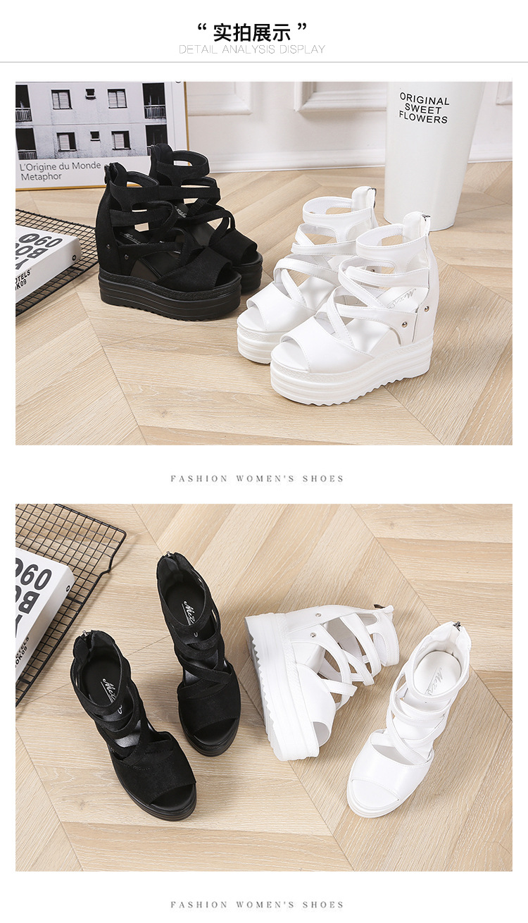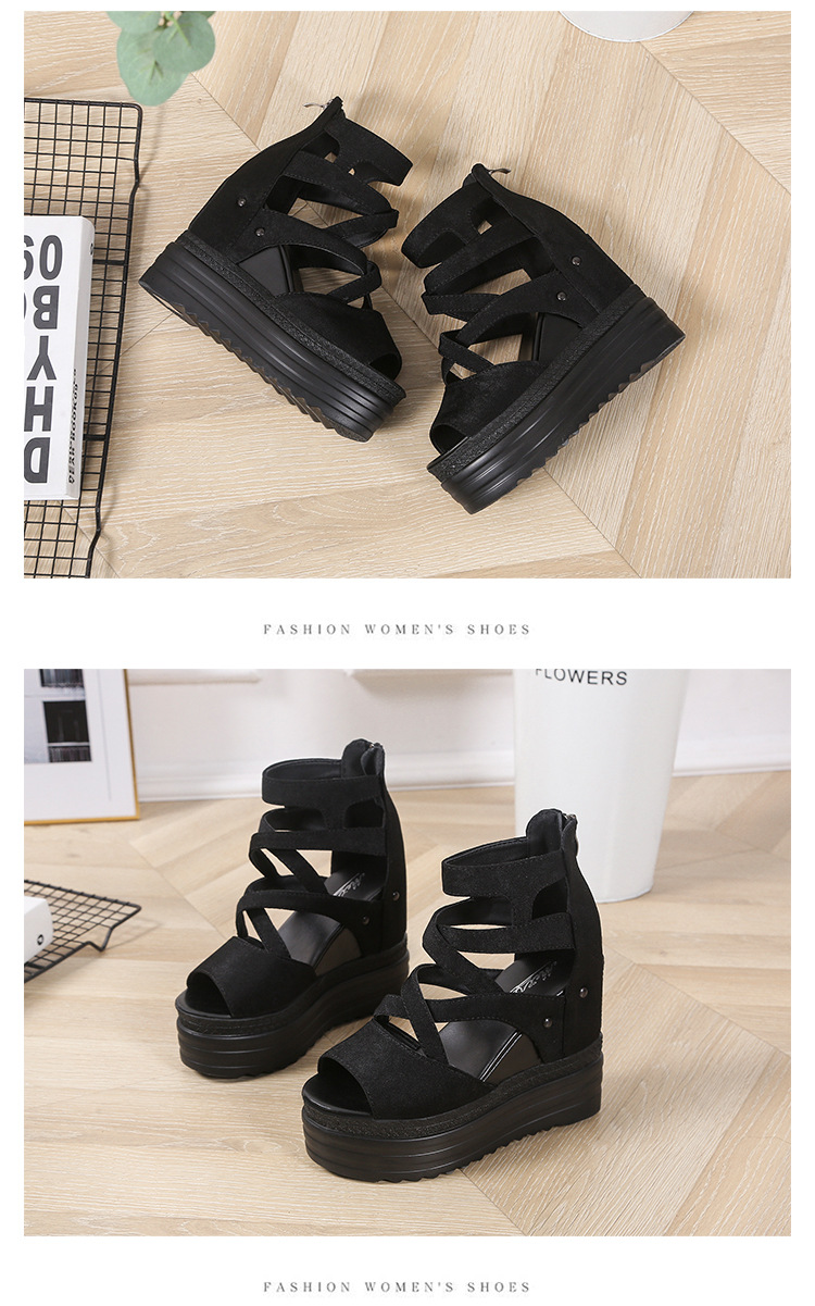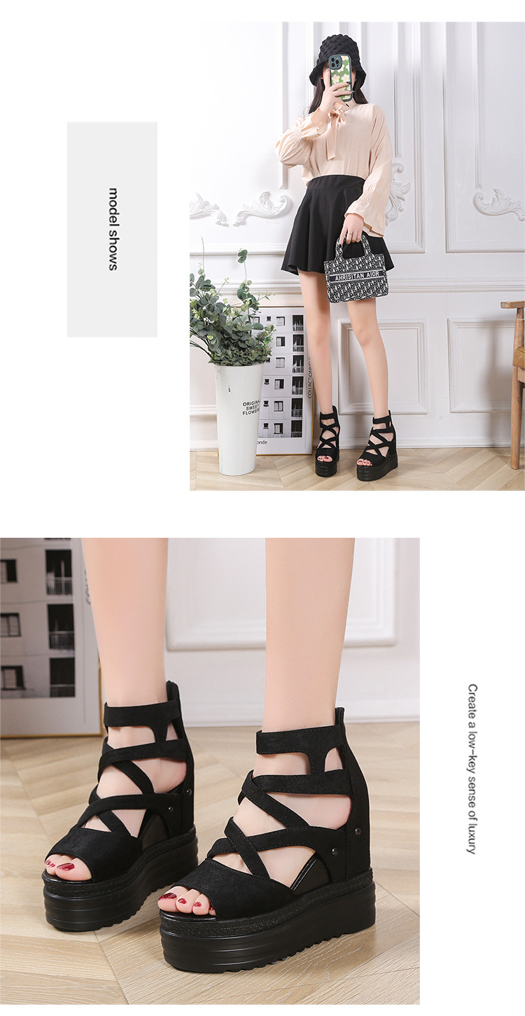 2023 여름 중공 로마 샌들 웨지 힐 높이 증가 플랫폼 신발