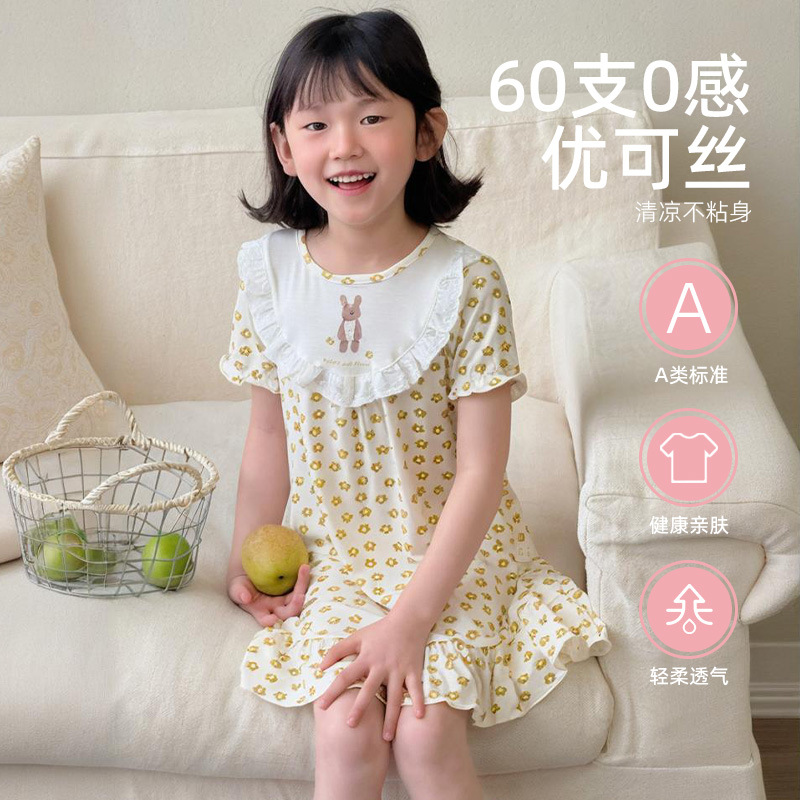 통 베이 지아 여름 새로운 치마 소녀 원피스 50 유코시 짧은 소매 나이트 드레스 공주 원피스스토어 가기