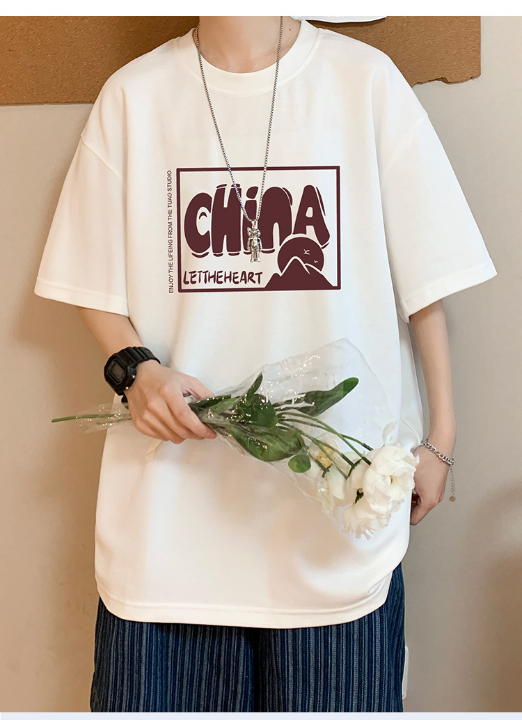 트렌디 브랜드 티셔츠 남성용 2023 새로운 반팔 여름 옷 탑 면 루즈한 티셔츠 반팔 베이스 셔츠 중국스토어 가기