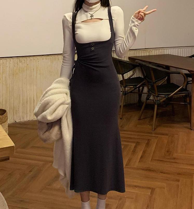 여성을 위한 순수한 욕망 스타일 정장 스커트 새로운 한국 스타일 슬림 디자인 탑 하이 웨이스트 힙 스트랩 드레스 투피스 세트스토어 가기