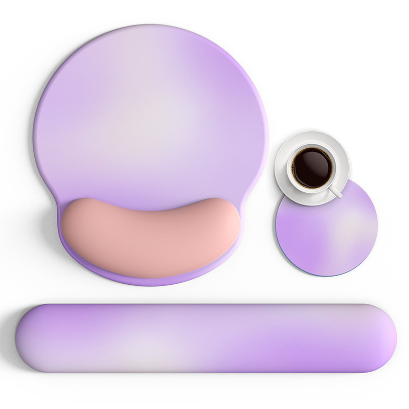 • 보라색 구름 화이트 윙: 둥근 손목 + 긴 거품 2 피스 마우스 패드