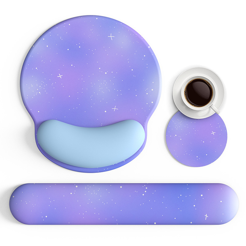 • 보라색 별이 빛나는 하늘: 둥근 손목 + 긴 거품 2 피스 마우스 패드