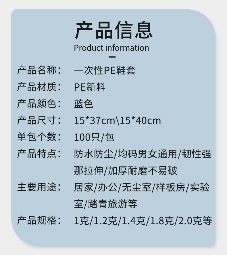【产品名称】:一次性塑料鞋套