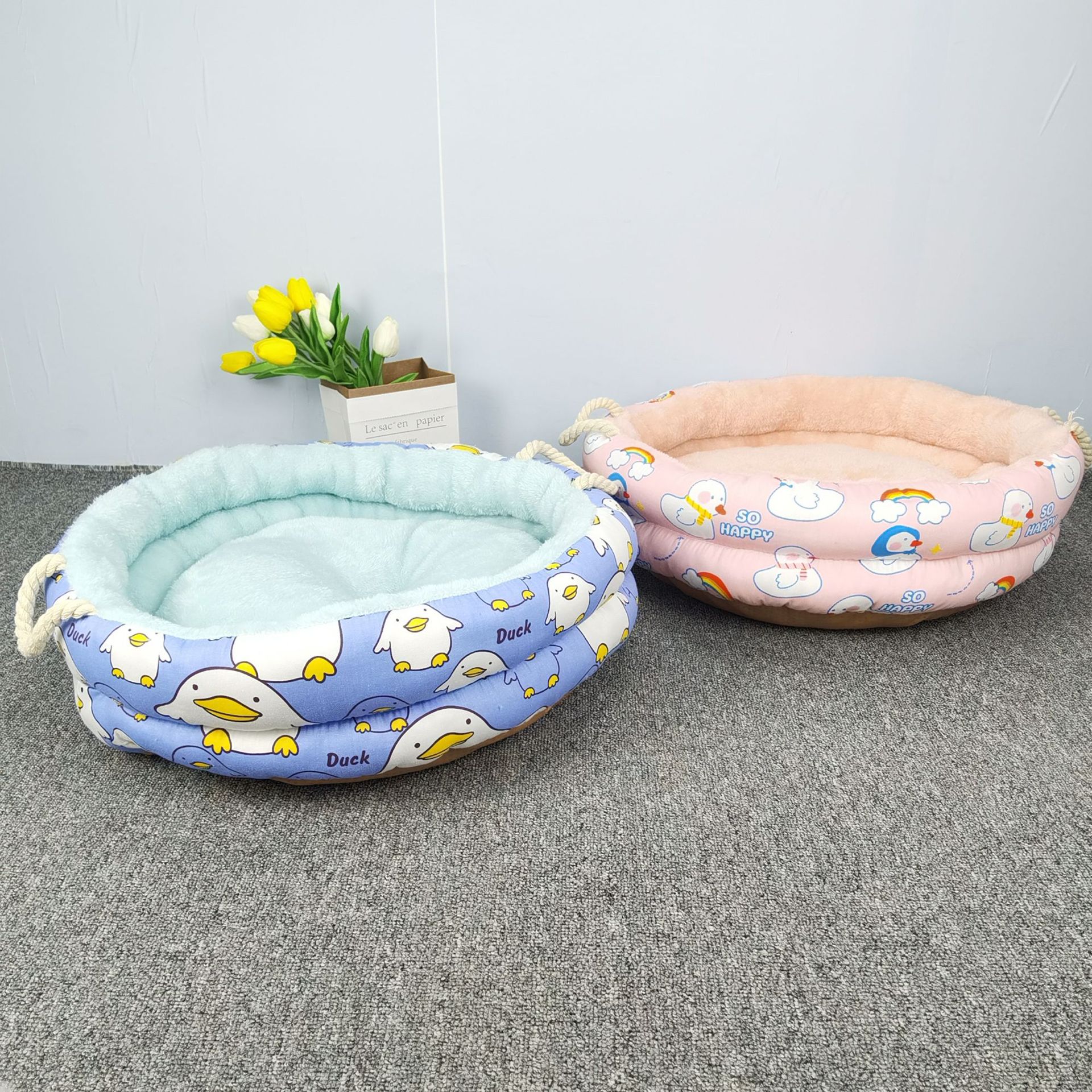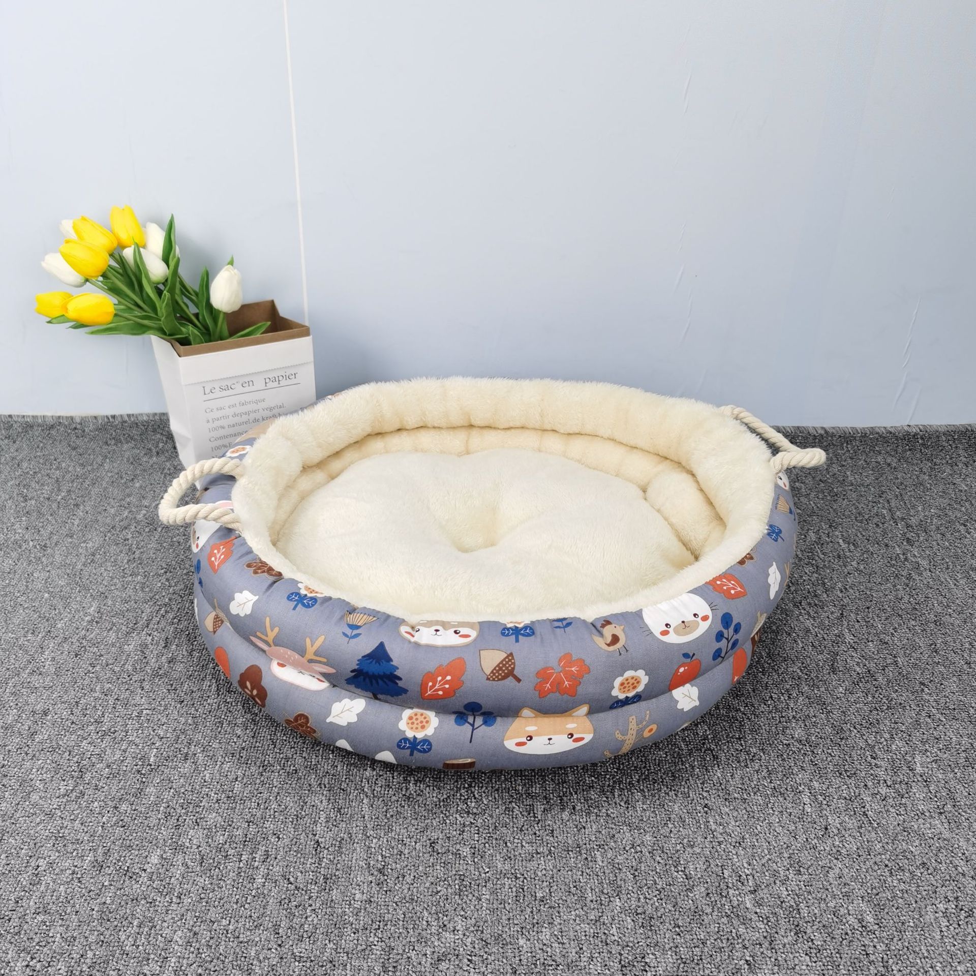 가을 겨울용 강아지 고양이 집, 패브릭 면 소재, 고양이와 강아지 겸용, 손잡이가 있는 이동식 집, 겨울용 두꺼운 애완동물 집