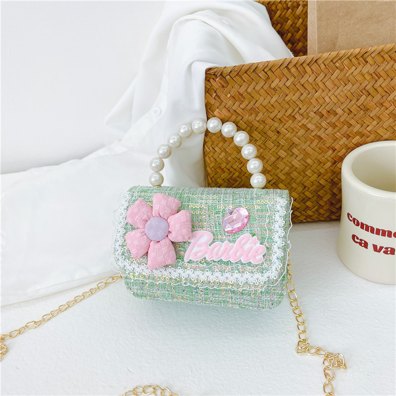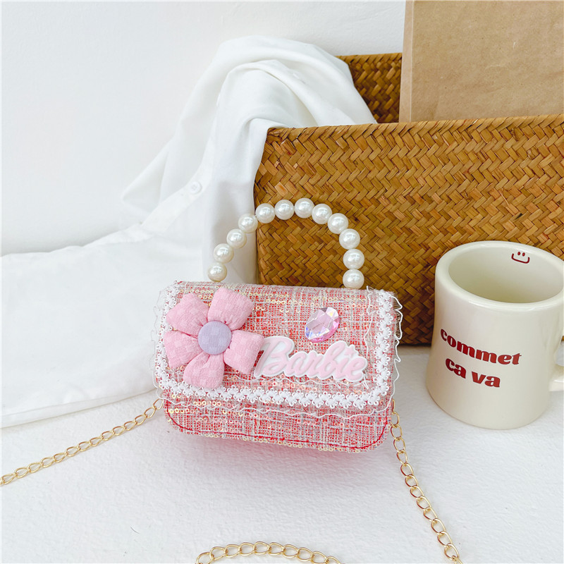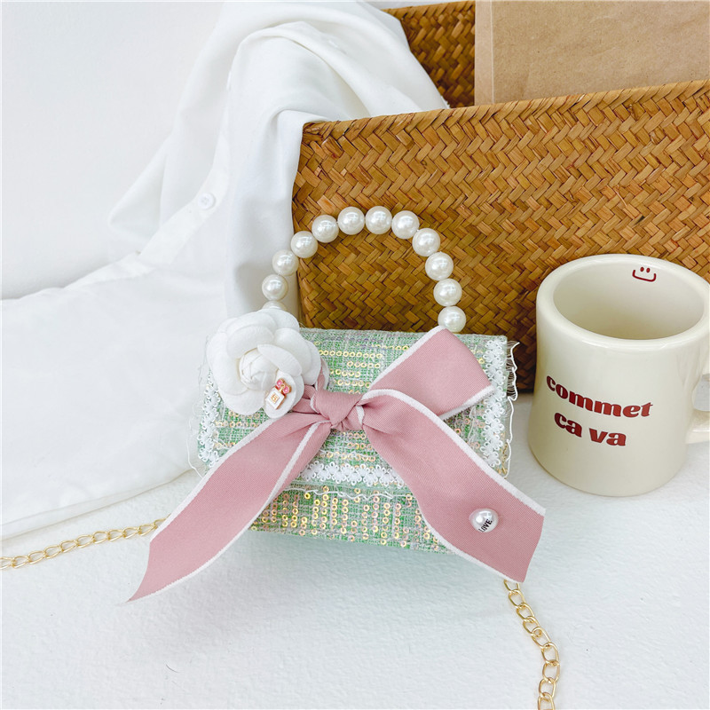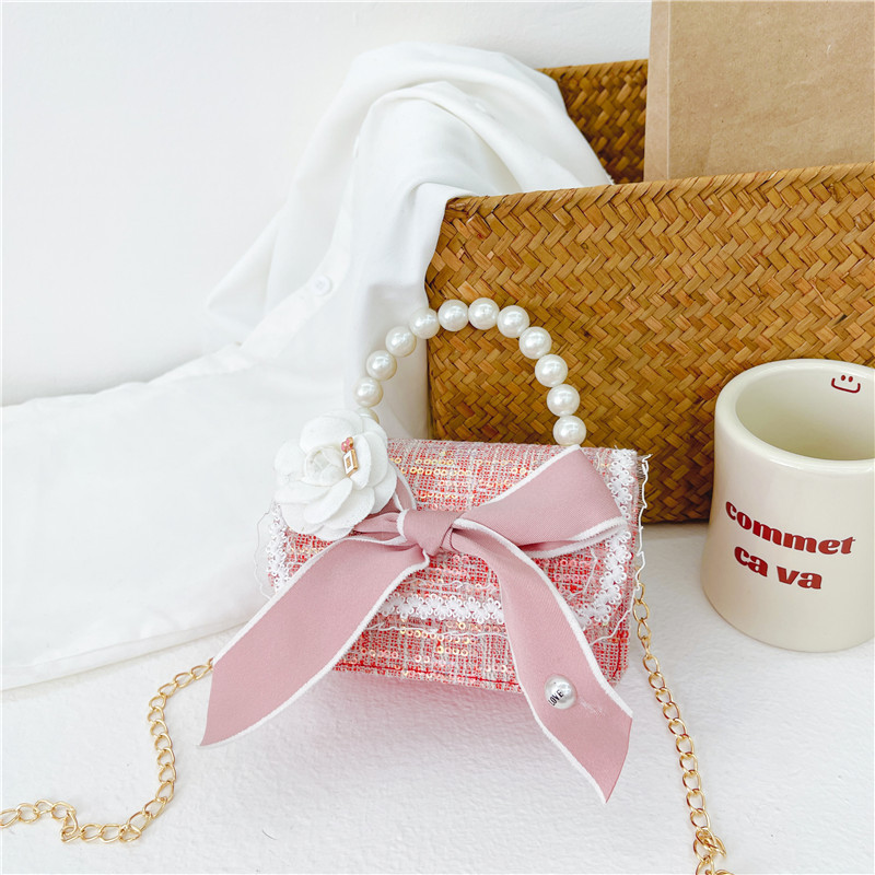 메신저 백 아동 가방 새로운 작은 향기로운 스타일 코튼 린넨 핸드백 패션 진주 어깨 동전 지갑 대외 무역 도매스토어 가기
