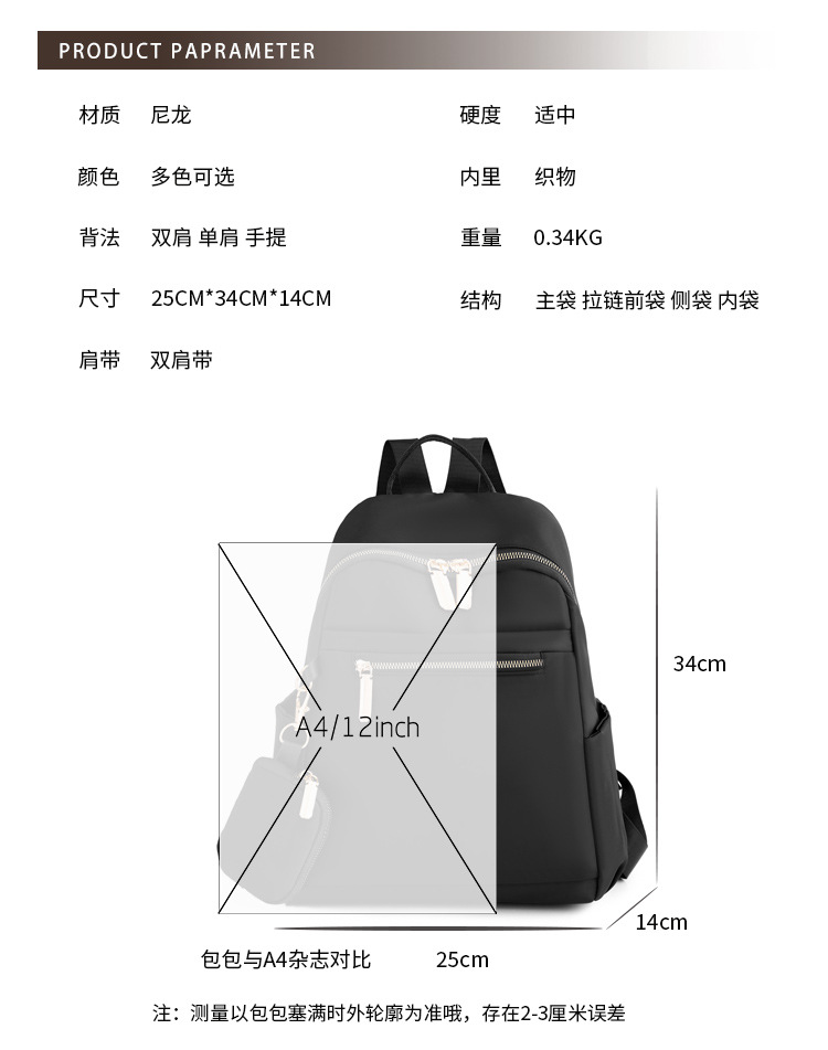 여행 배낭 여성용 2023 새로운 유행 캐주얼 옥스포드 천 배낭 한국 스타일 경량 간단한 대용량 책가방스토어 가기