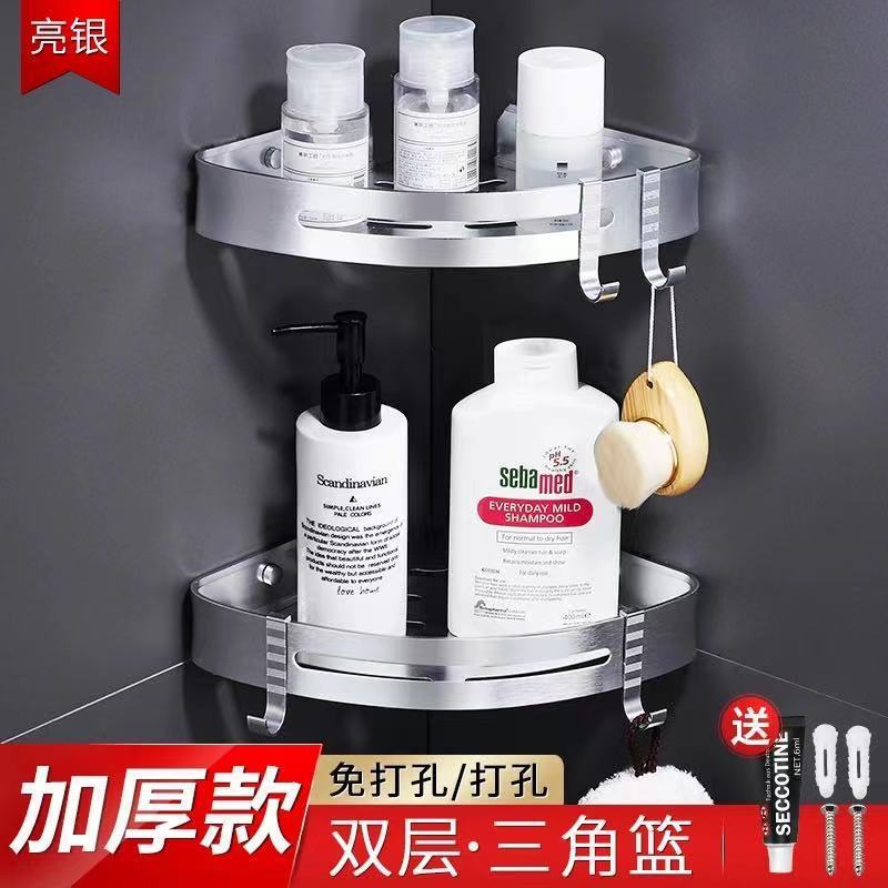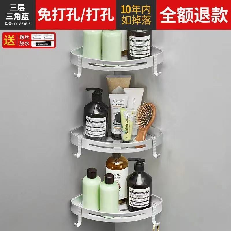 펀치 없는 공간 알루미늄 수납 랙 화장실 화장실 삼각대 욕실 수납 랙 벽걸이 형 화장실 코너 랙스토어 가기
