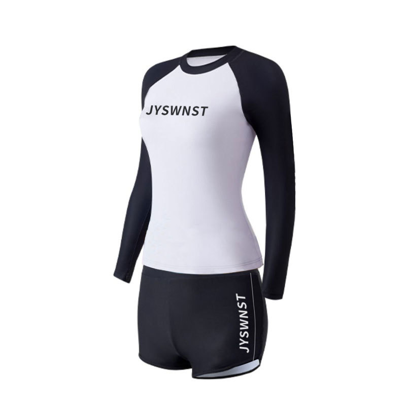 Jisheng 수영복 여자의 보수적 인 분할 하이 엔드 수영 긴 소매 대비 색상 2023 새로운 자외선 차단제 다이빙 서핑 세트