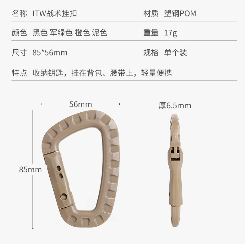ITW 경량 중형 전술 야외 등산 버클 등산 가방 외부 걸이 플라스틱 스틸 패스트 후크 키체인 D형 버클