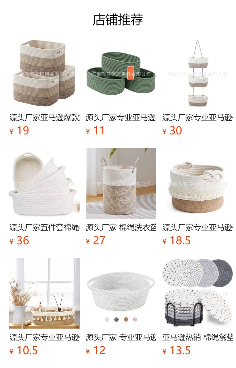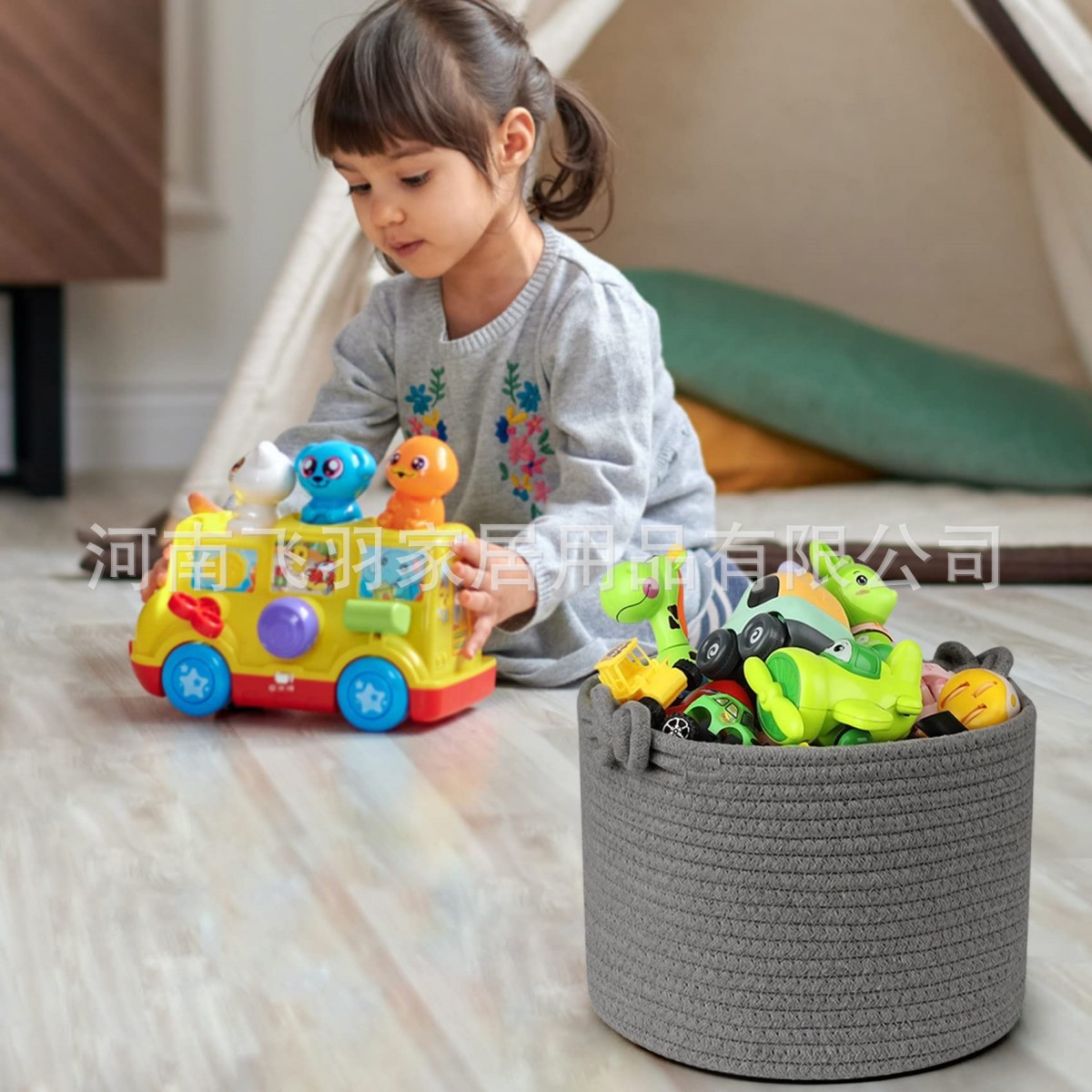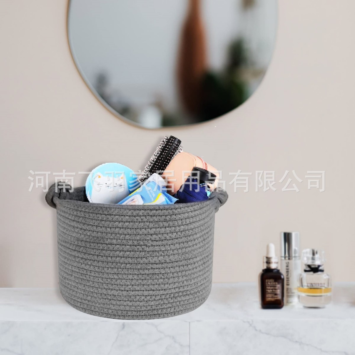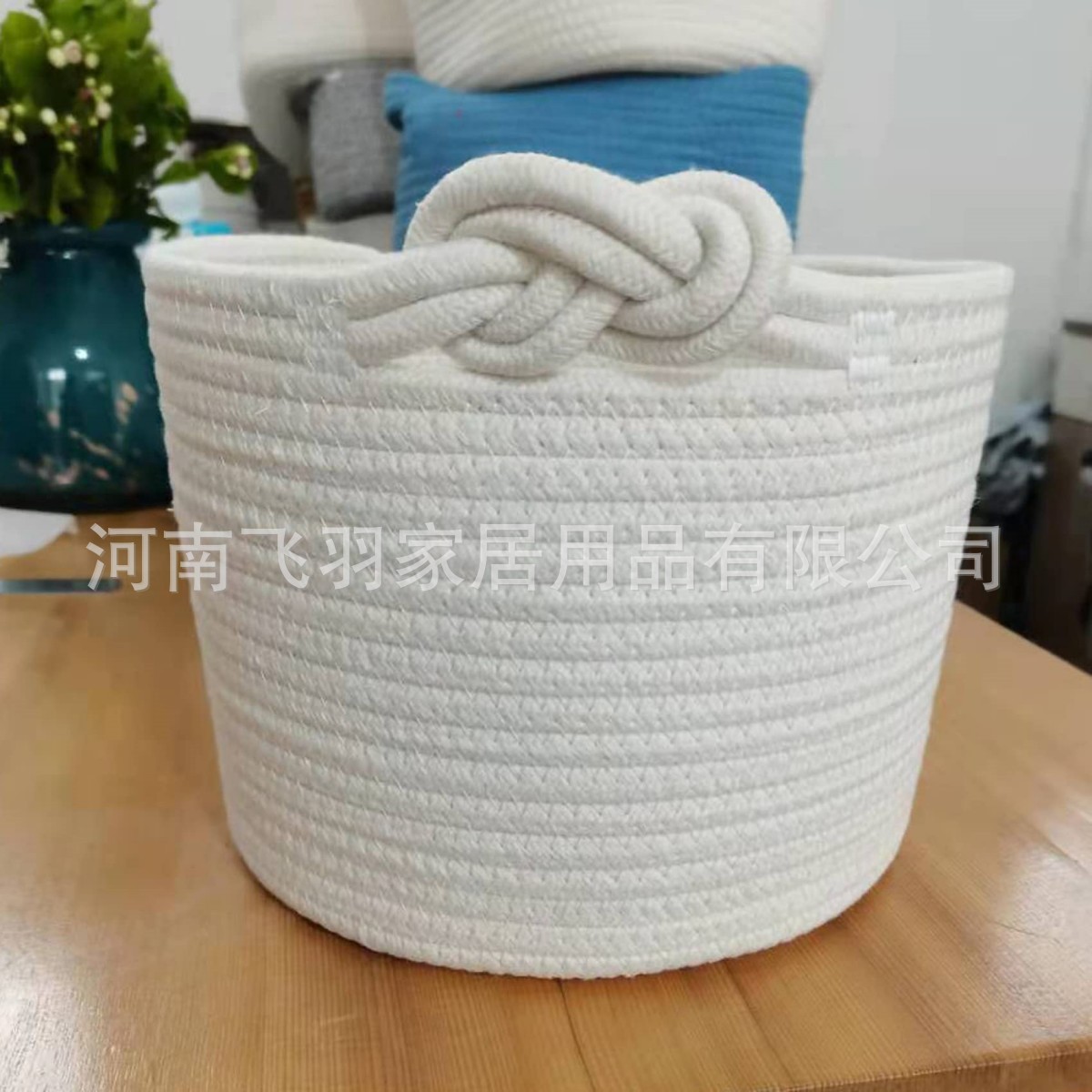 소스 제조 업체 전문 아마존 공급 원형 면화 로프 화분 장난감 손잡이 보관 바구니 장식 바구니스토어 가기