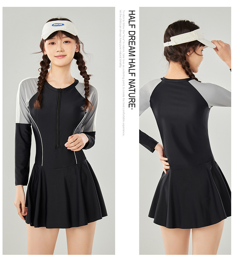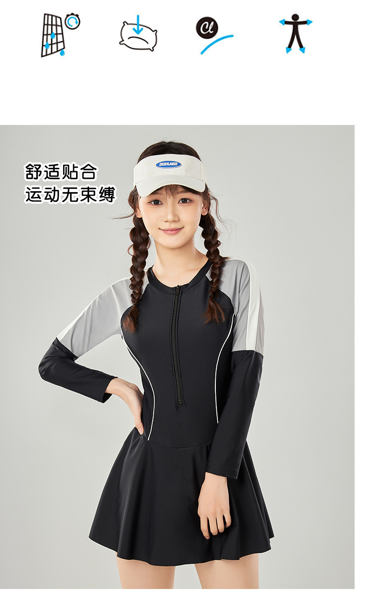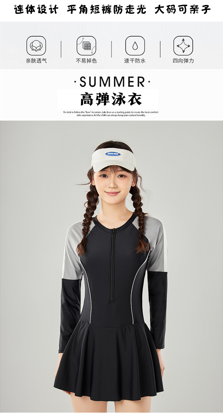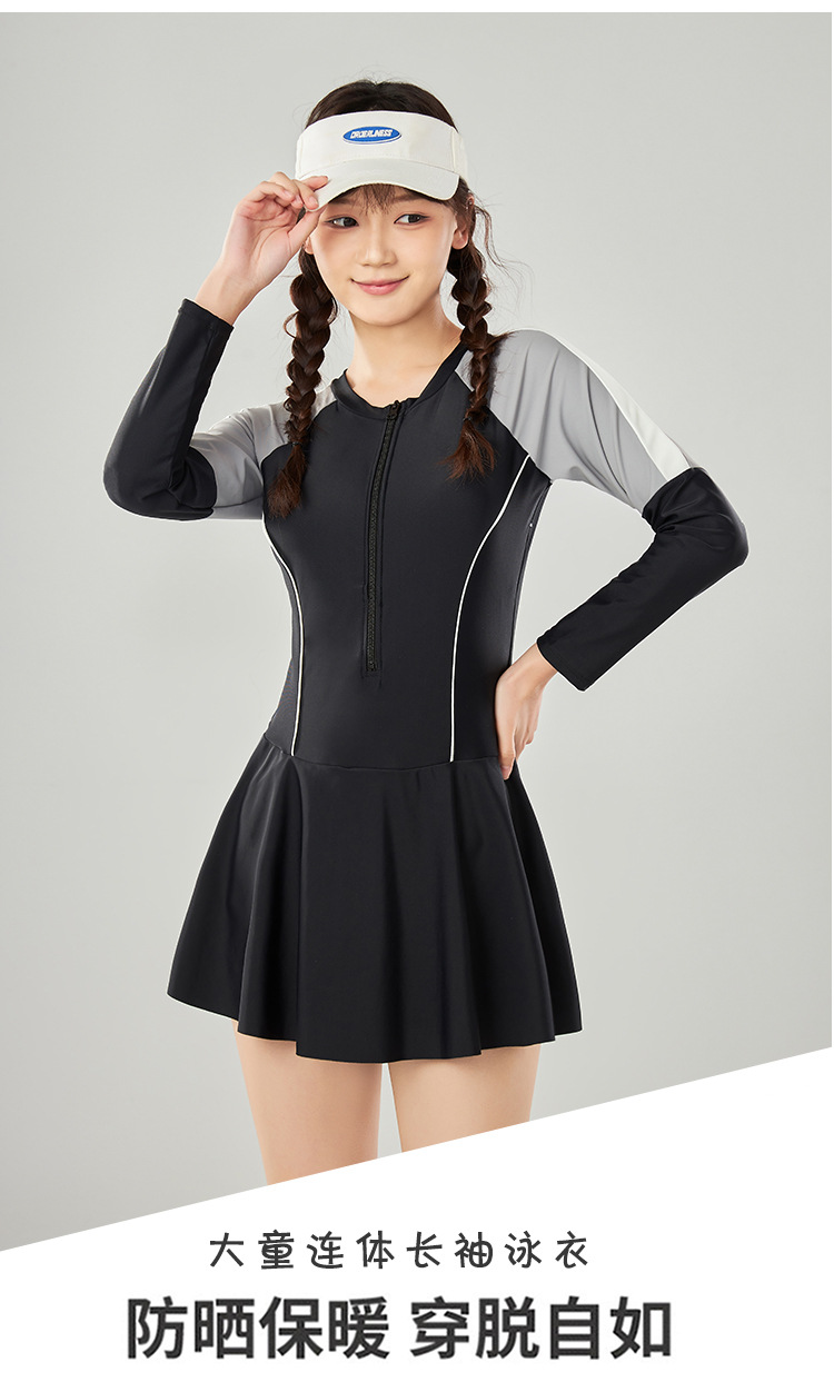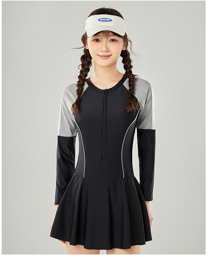 2023 빅 키즈 비치 수영복 여름 새로운 원피스 스커트 수영복 소녀 학생 소녀 긴팔 자외선 차단제 수영복스토어 가기
