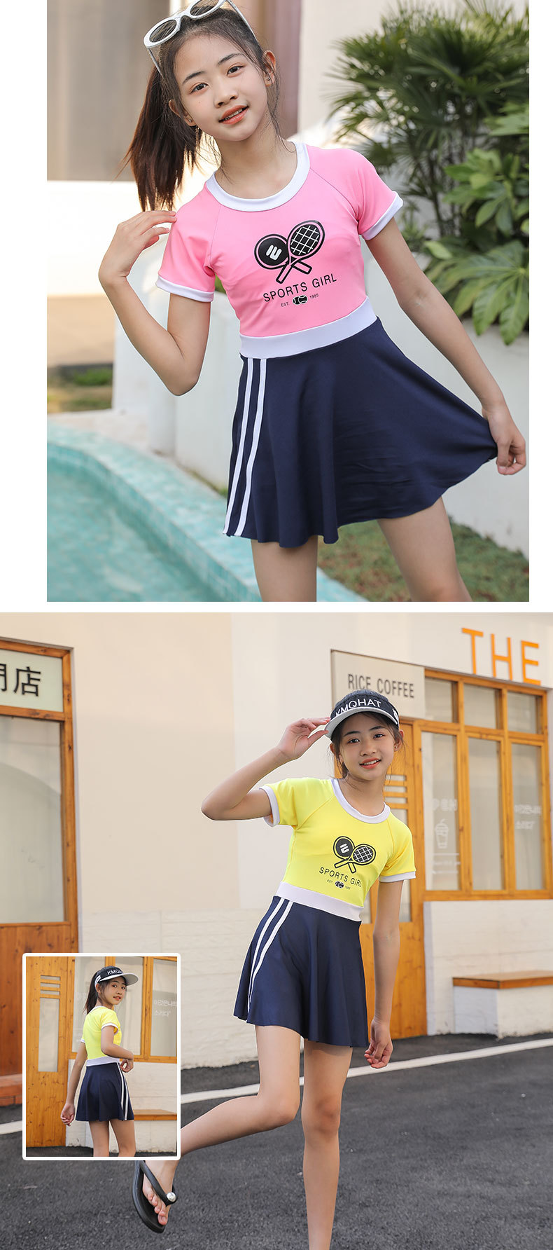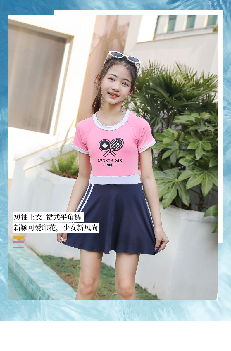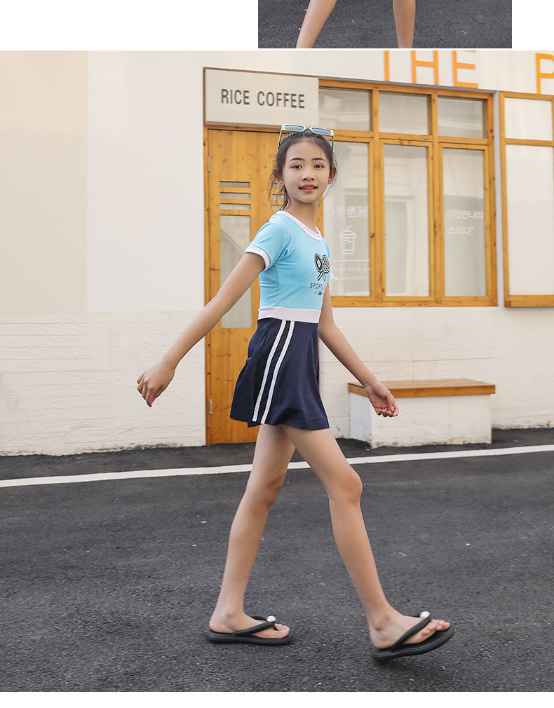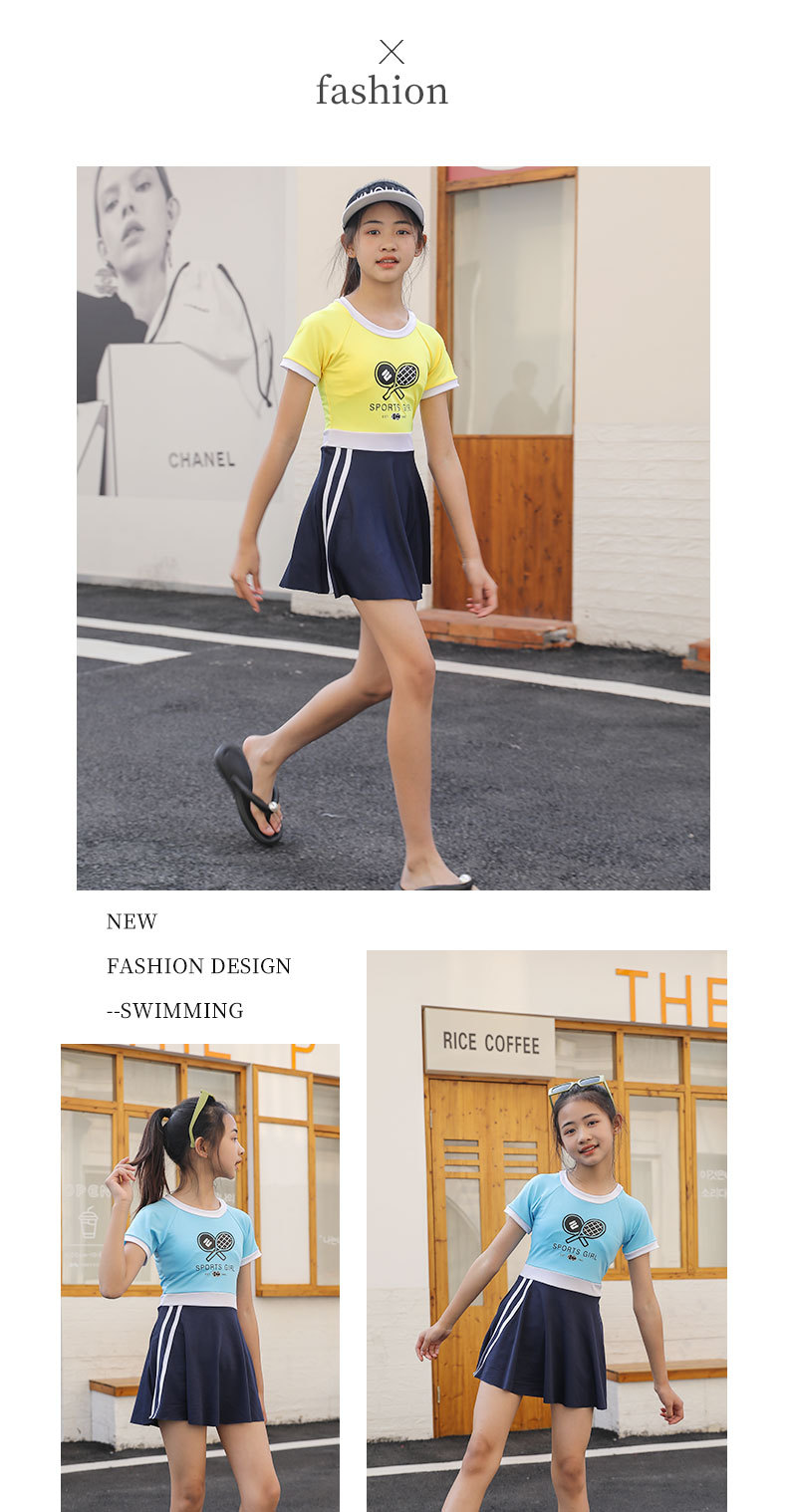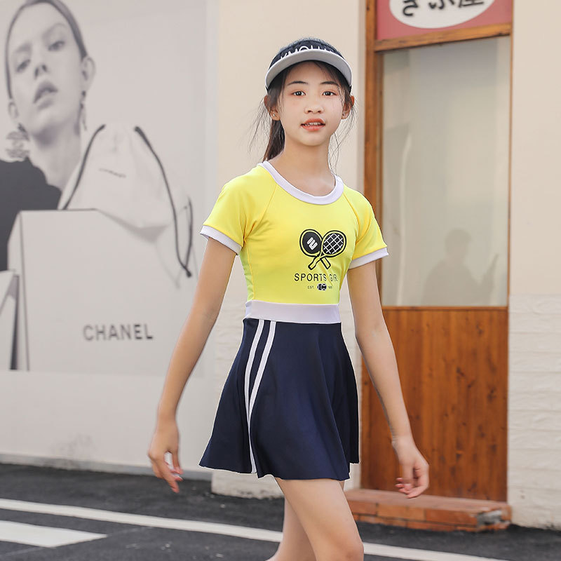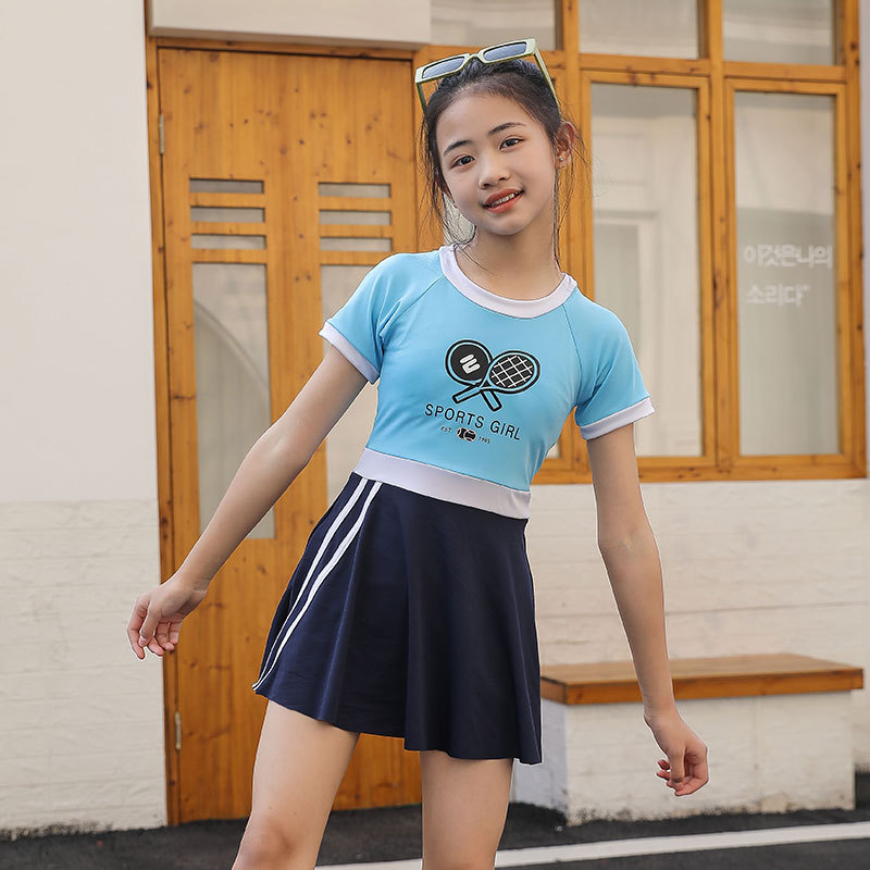 매우 어린 어린이 수영복 여아 원피스 프린트 반팔 큰 어린이 2023 새로운 스타일 여아 수영 자외선 차단제 전문 수영스토어 가기