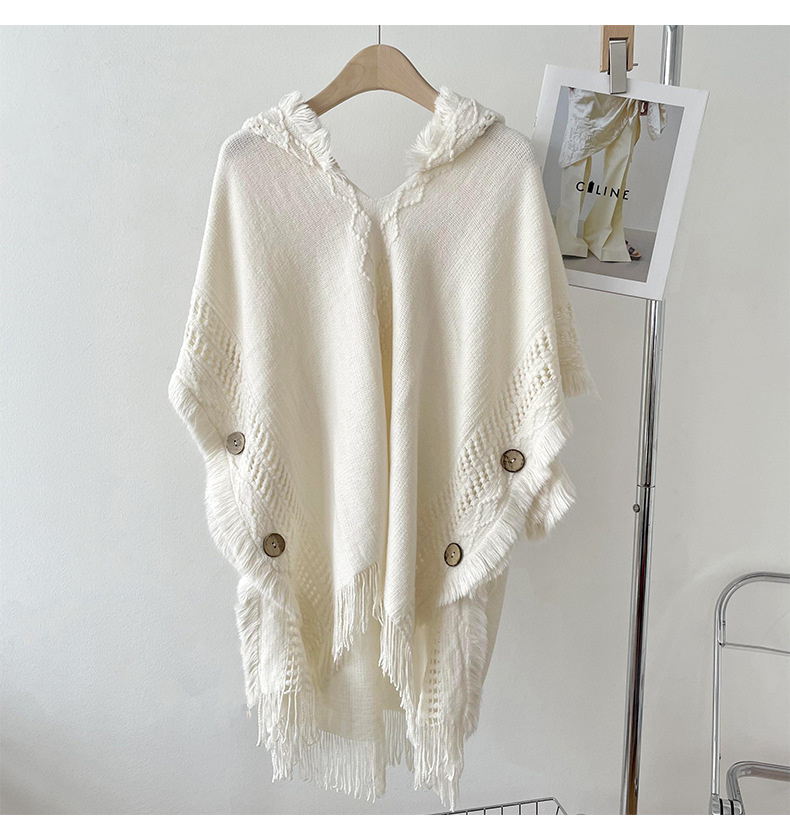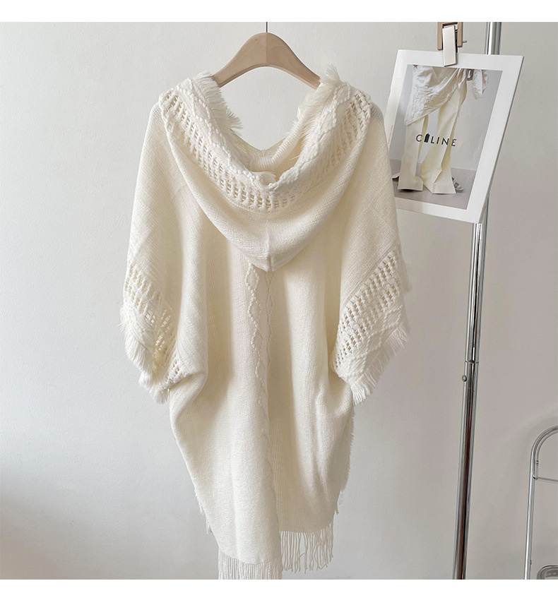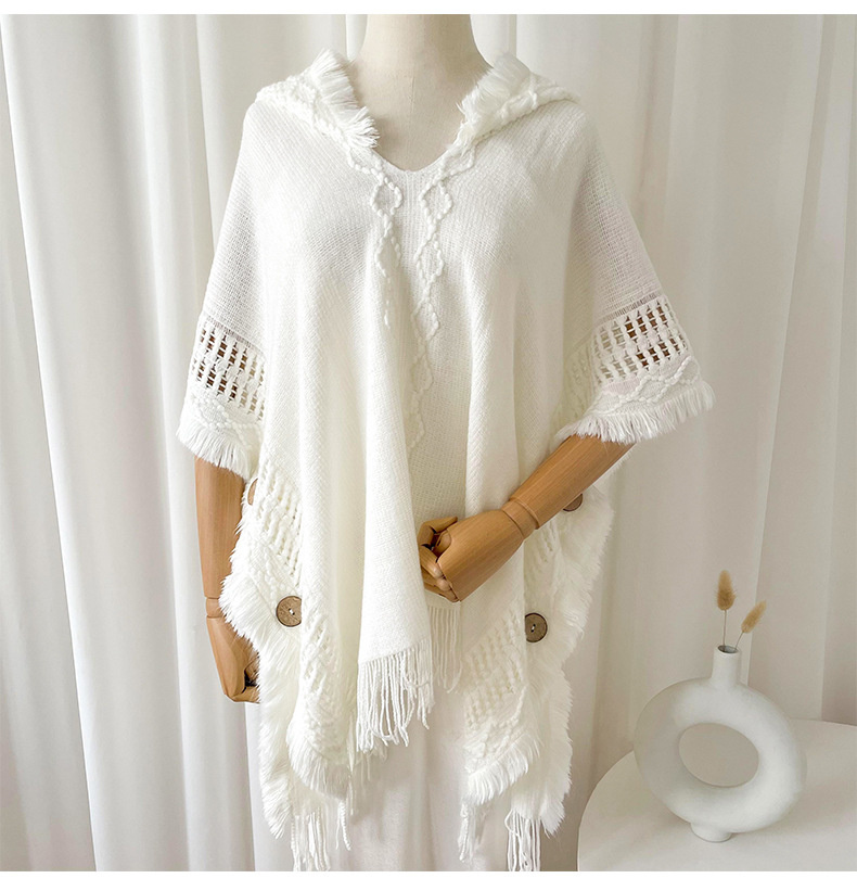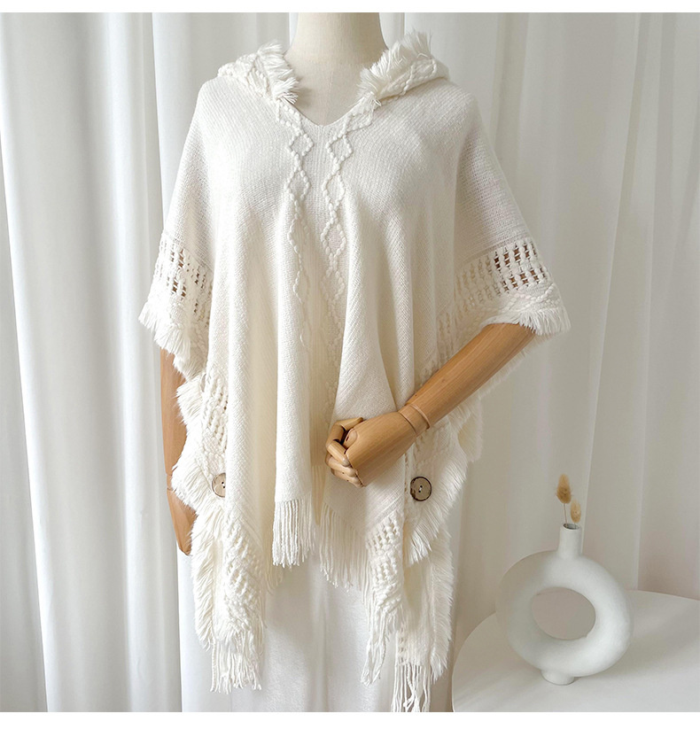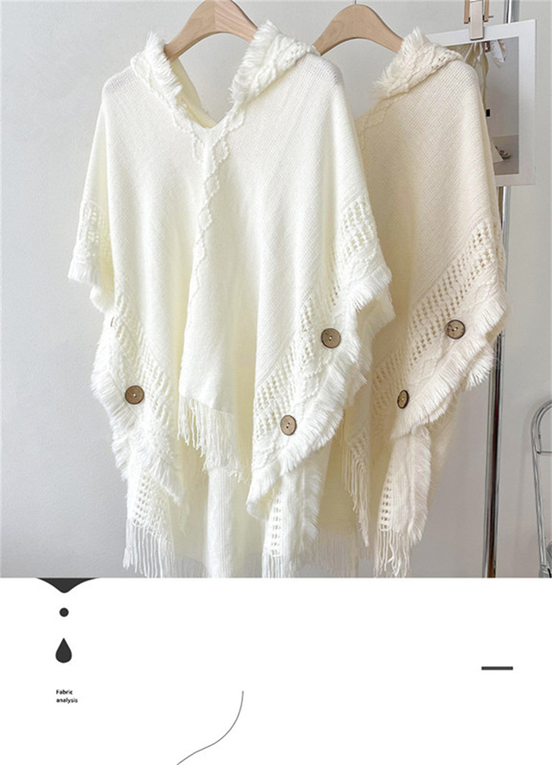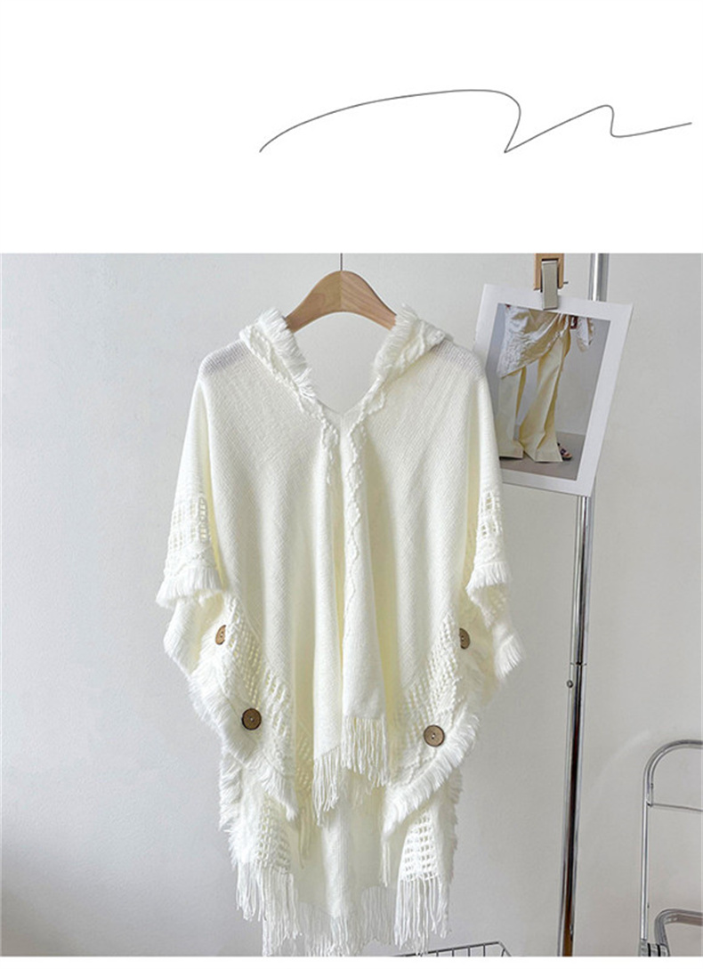 해외 무역 숄 여성용 보헤미안 술 스웨터 니트웨어 여행 케이프 코트 후드 스카프 여성용 모든 매치
