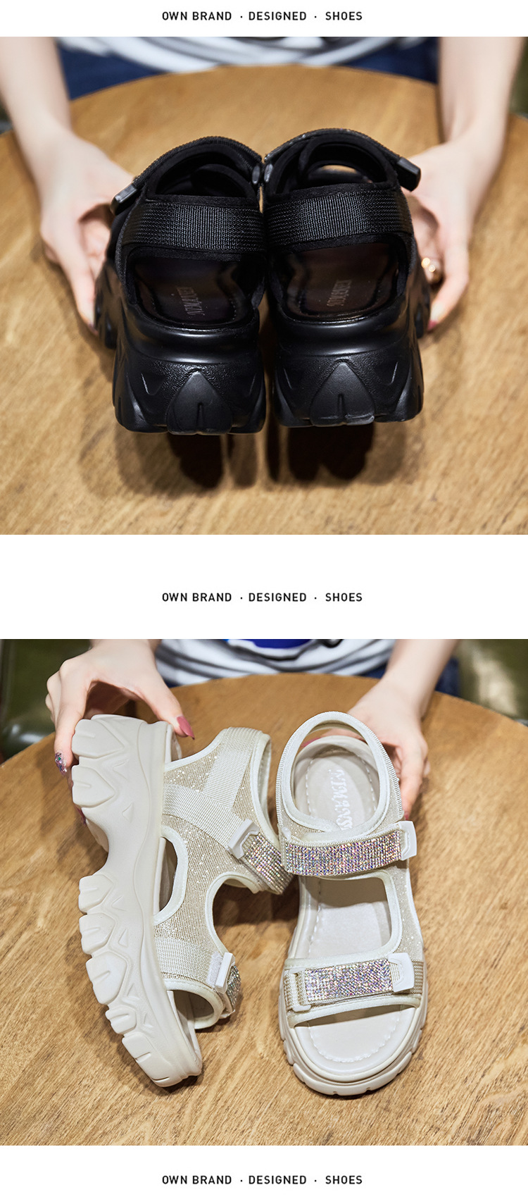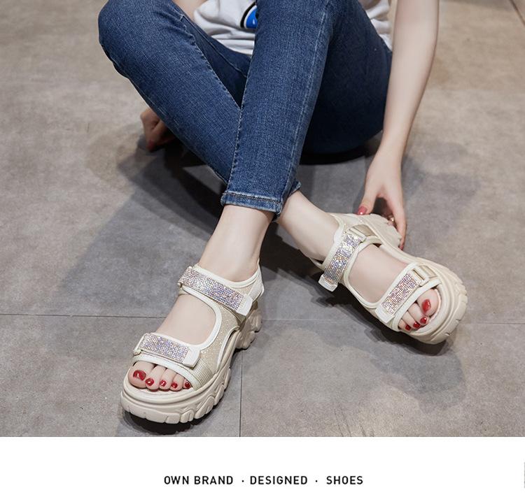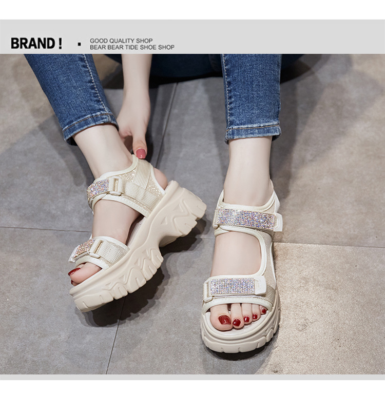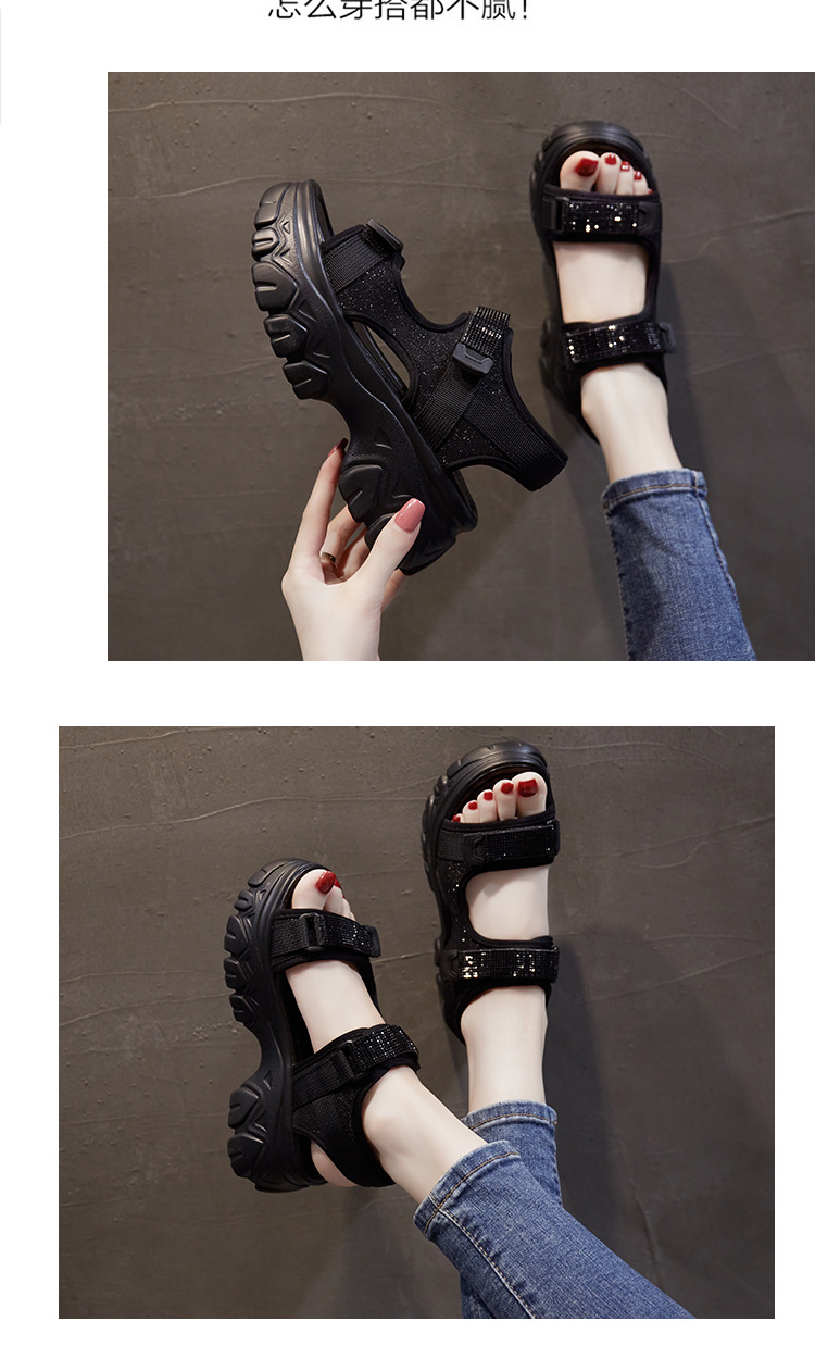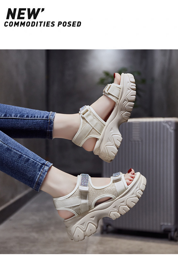 두꺼운 바닥 플랫폼 라인 석 샌들 여성용 여름 웨지 하이힐 캐주얼 비치 신발 2023 높이 경량 부드러운 바닥 여성 신발스토어 가기