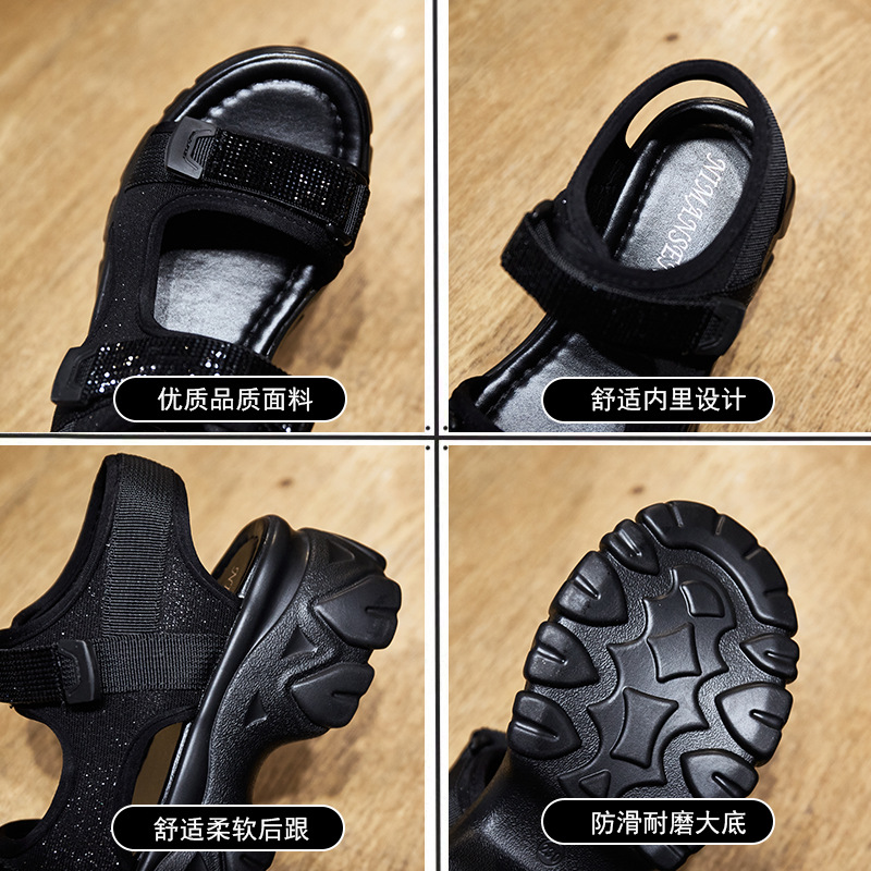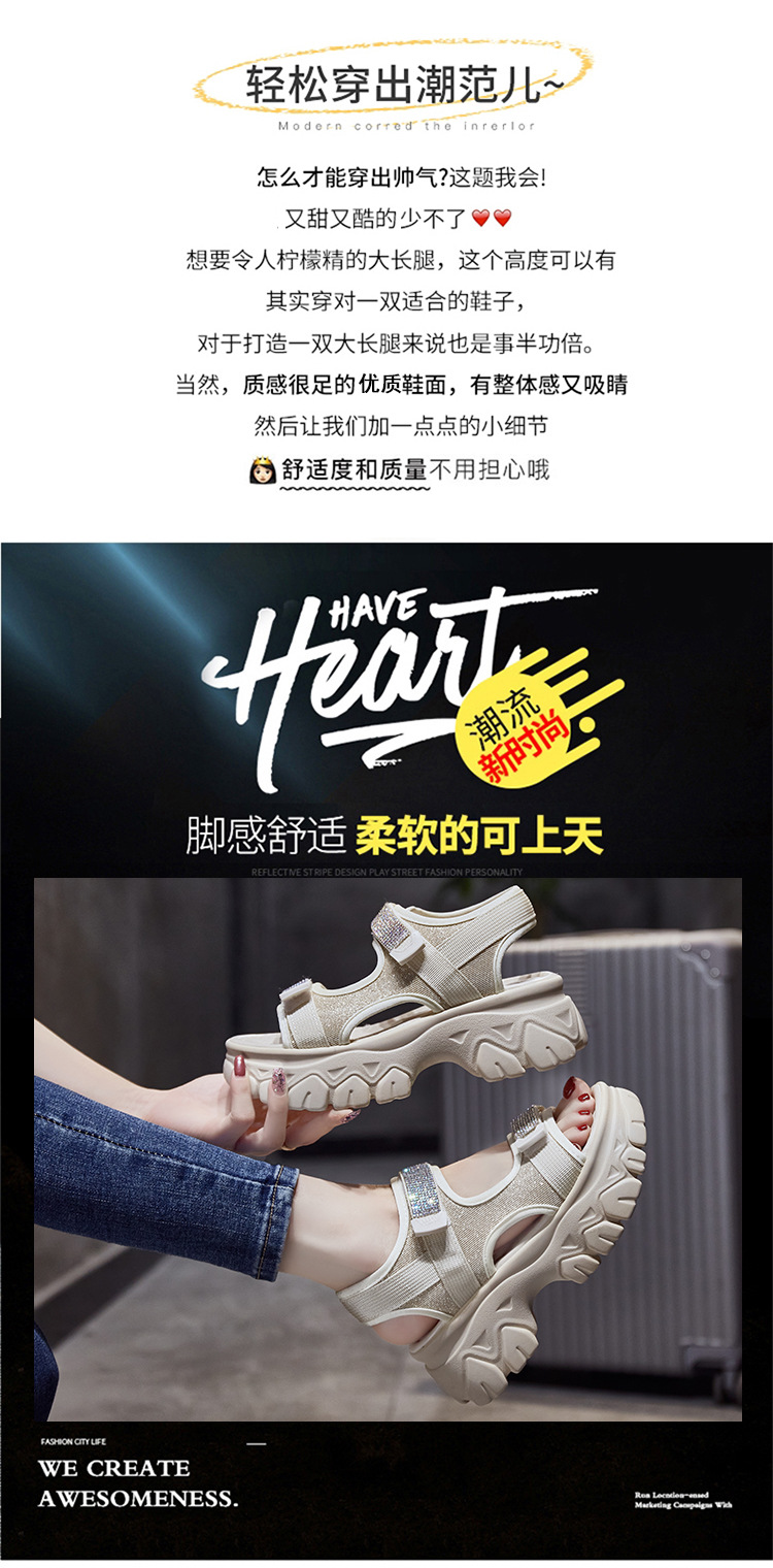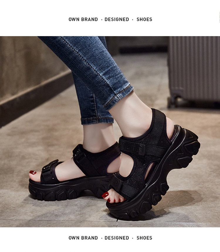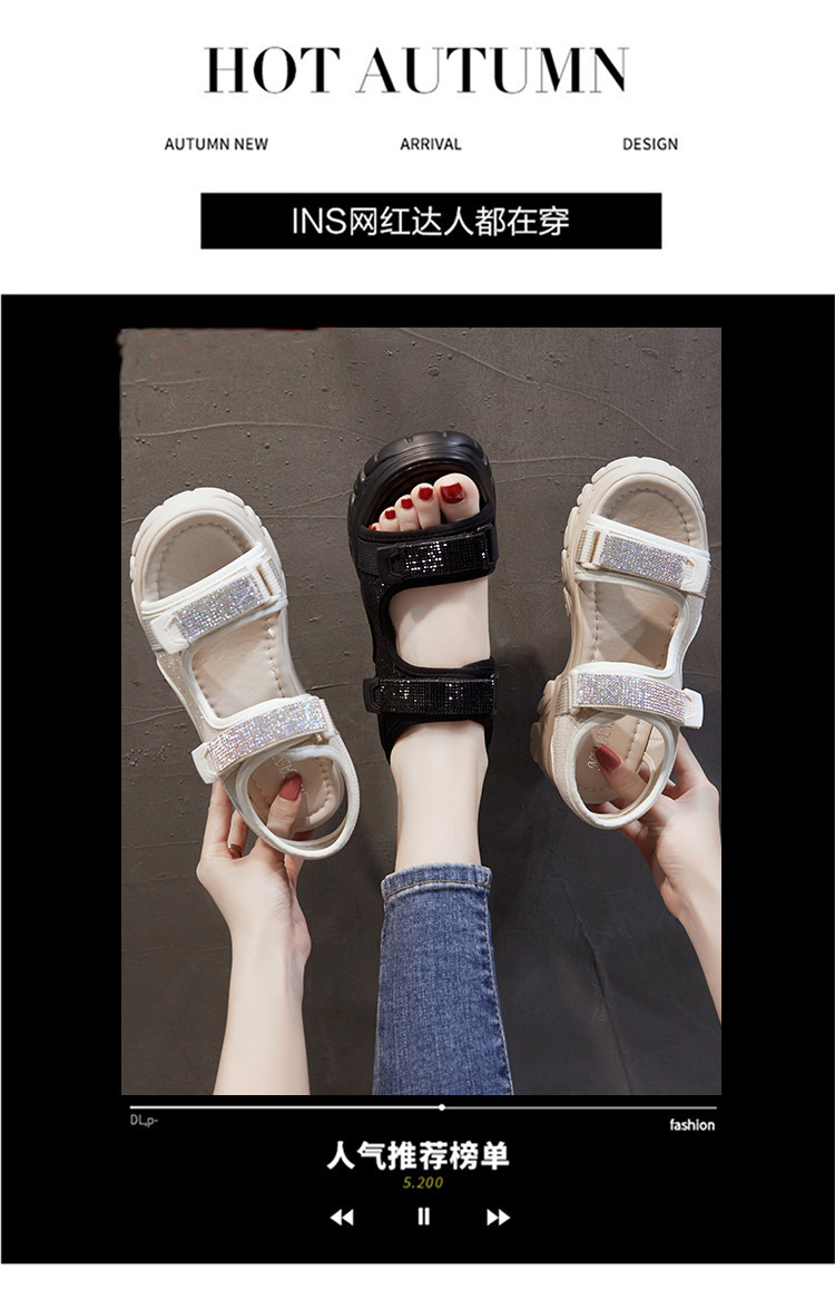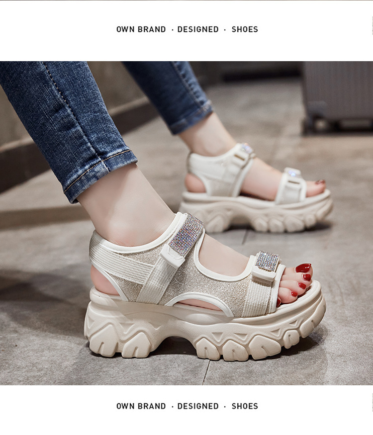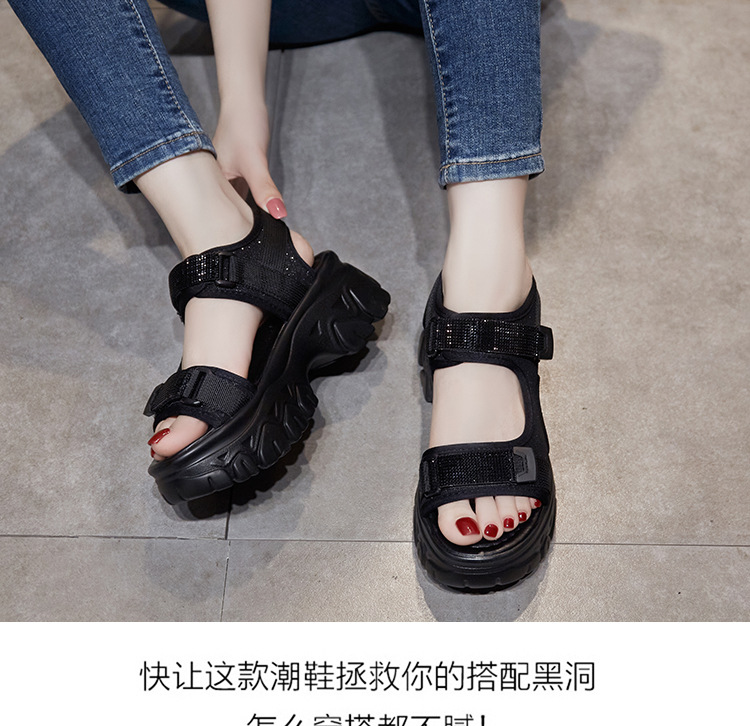 두꺼운 바닥 플랫폼 라인 석 샌들 여성용 여름 웨지 하이힐 캐주얼 비치 신발 2023 높이 경량 부드러운 바닥 여성 신발스토어 가기