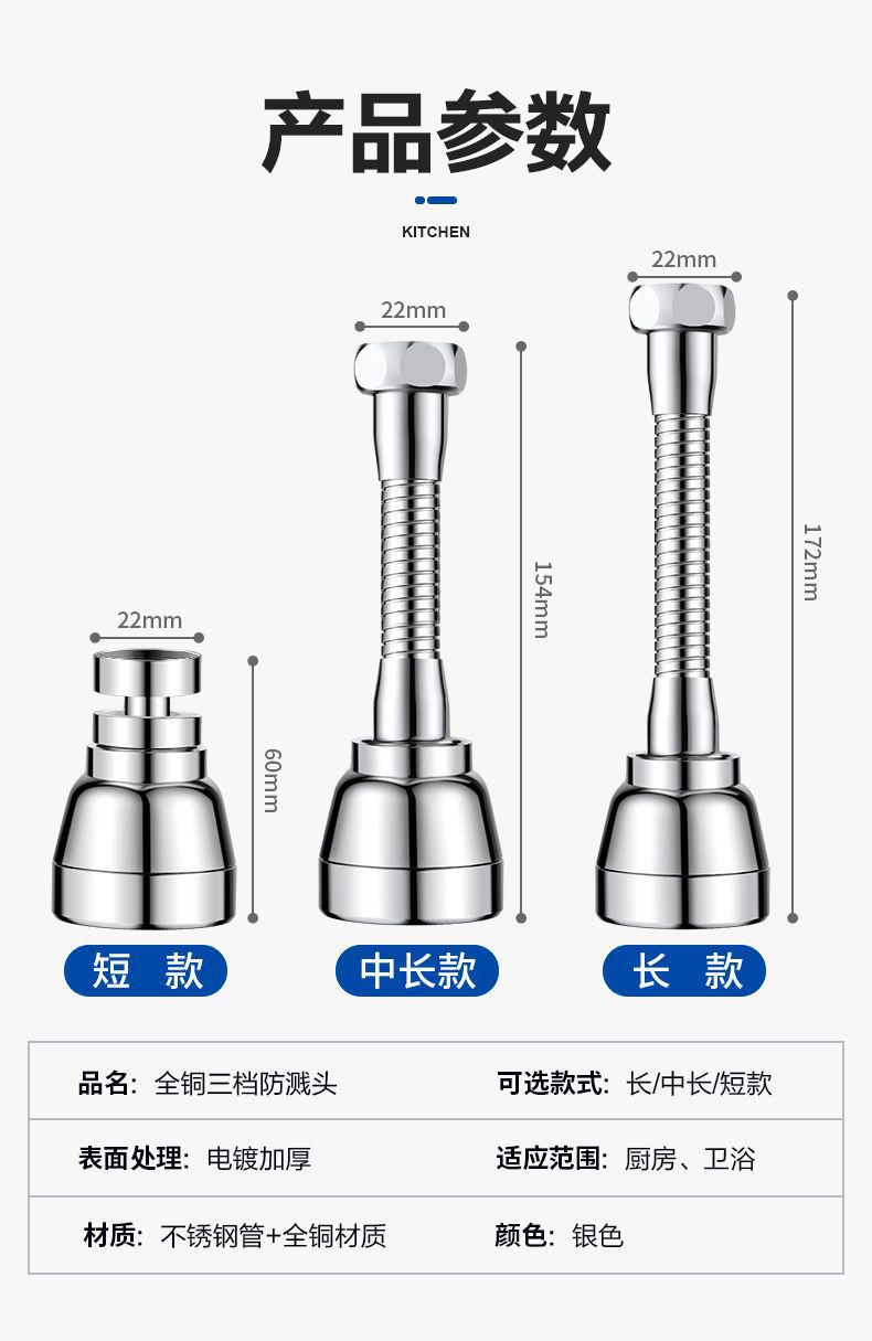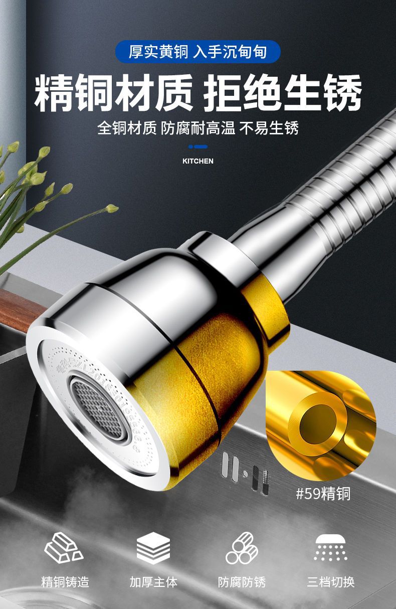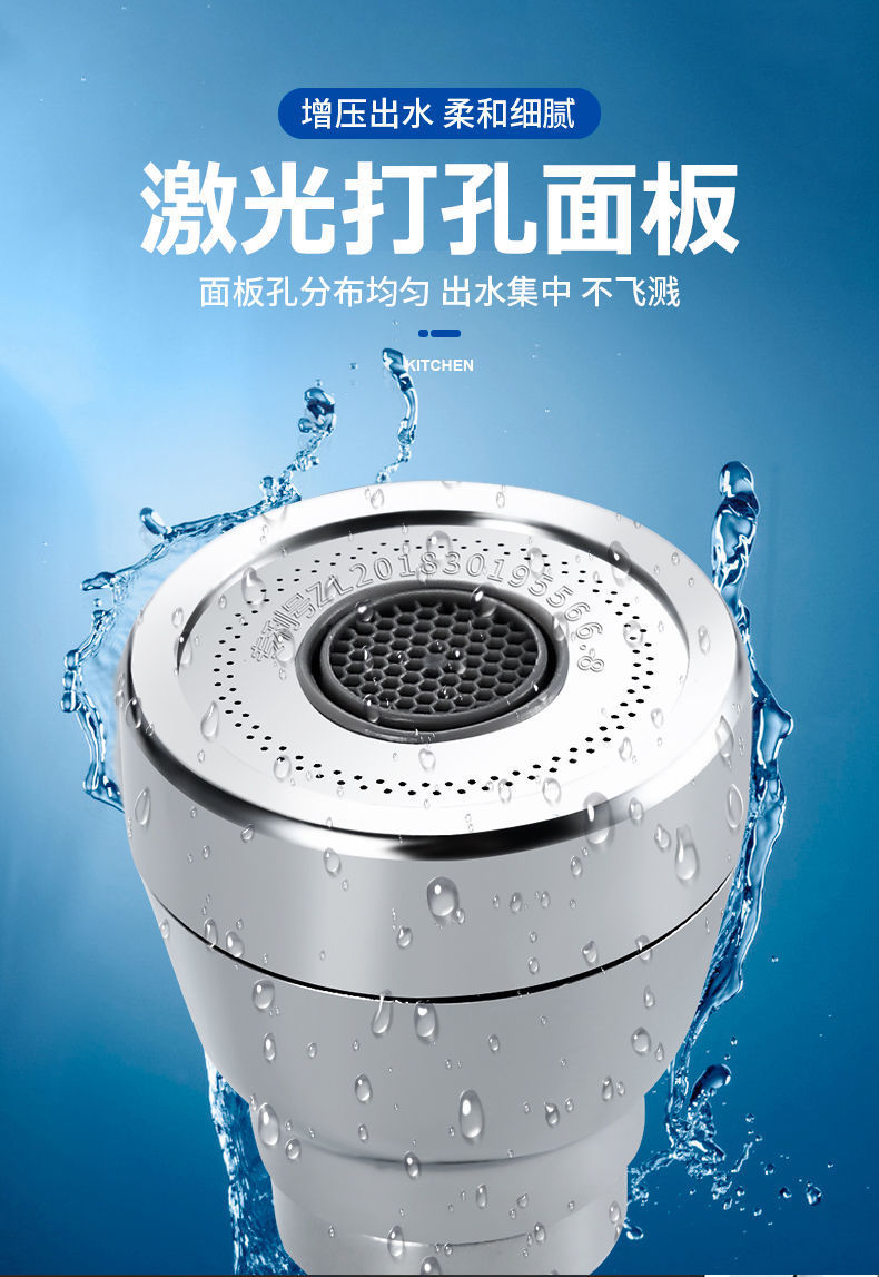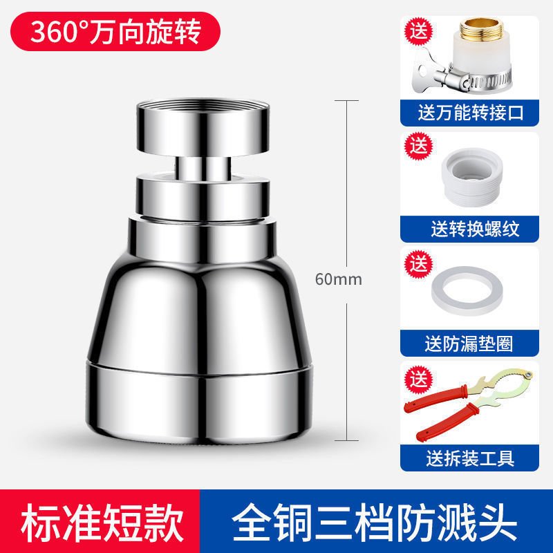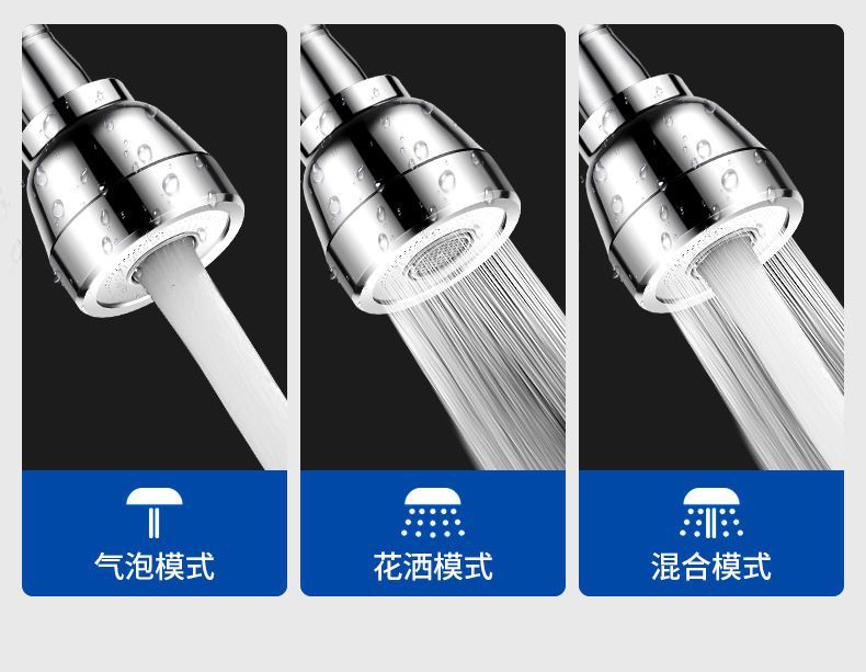 범용 회전 수도꼭지 필터 노즐 3 단 미세 구리 가압 스플래시 헤드 전기 도금 연장 버블러